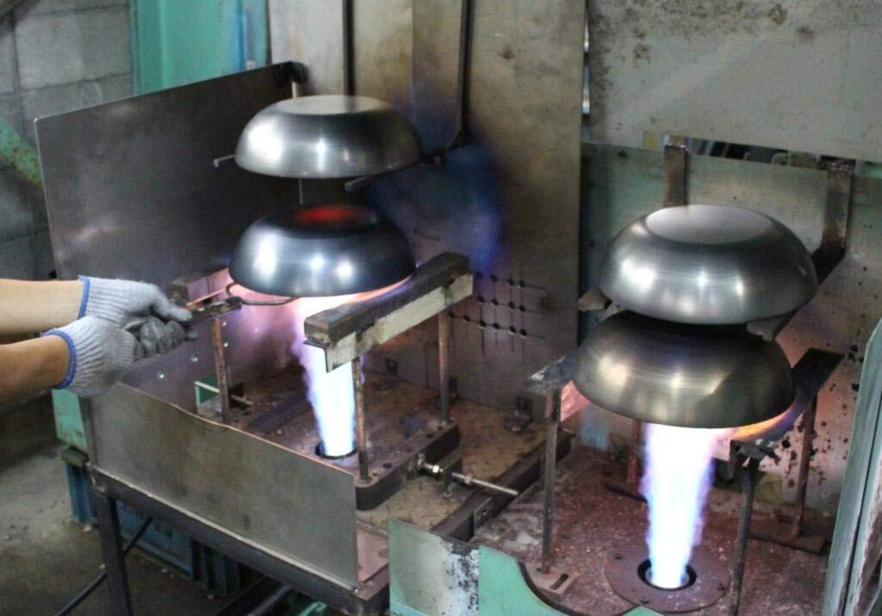 へら絞り加工で側面を薄く伸ばすことで軽量化