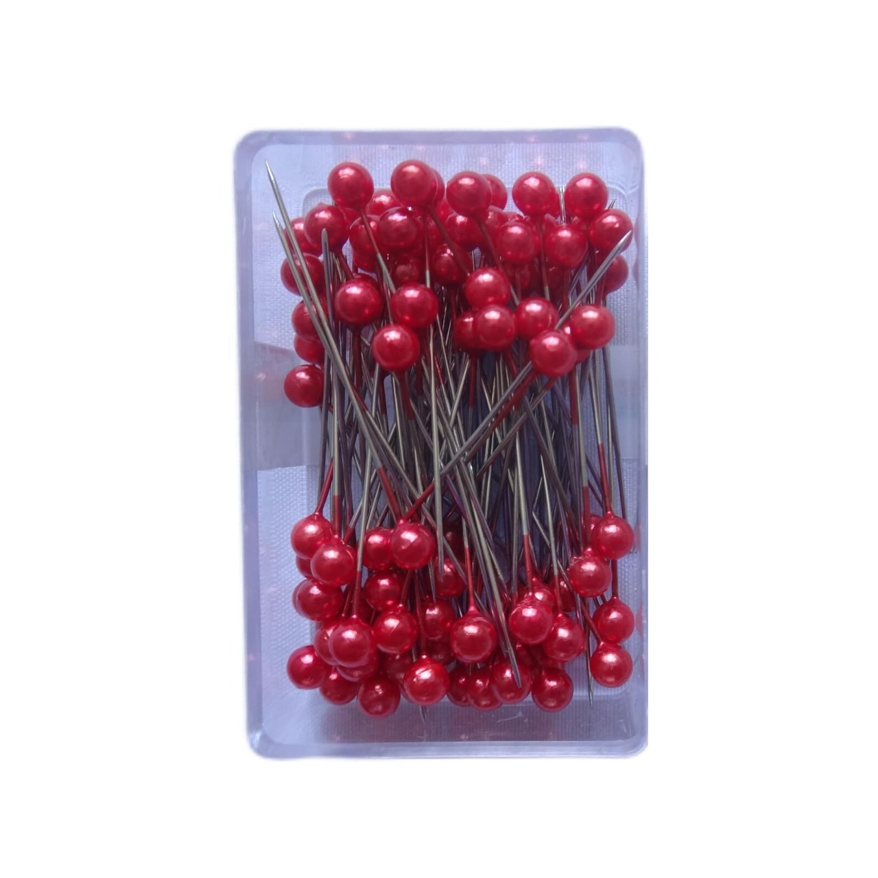 まち針 かわいい 耐熱 まちばり パッチワーク ソーイング用品 クラフト 手作り キルティング 待ち針 100本入り レッド