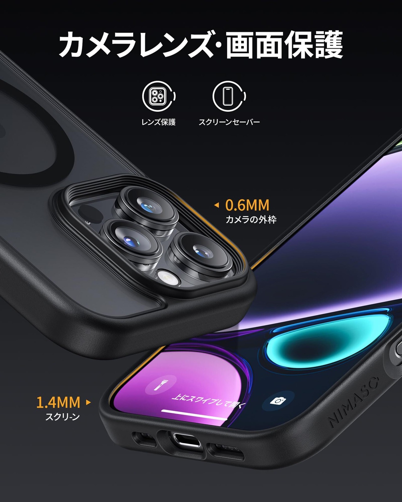 「NIMASO iPhone16ProMax用 ケース」は、あなたの大切なiPhoneをしっかりと保護するために設計された、スタイリッシュで機能的なケースです!滑り止めのマット仕上げと全面保護機能を兼ね備え、毎日の使用に最適です。