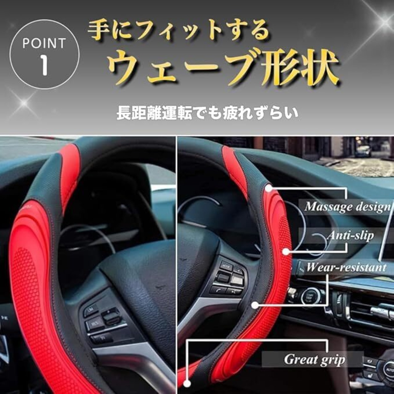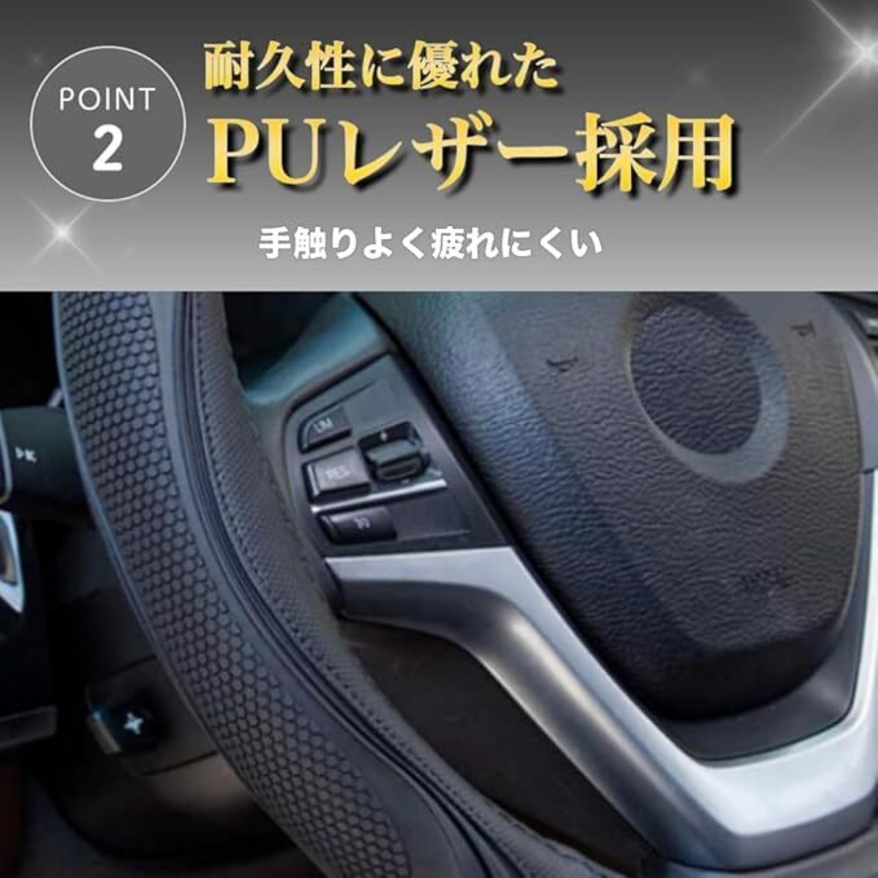 このハンドルカバーは、耐久性に優れたPUレザーを使用しており、肌触りが滑らかです。雨の日や汗をかく季節でも安心してご使用いただけます。長時間の運転でも手に優しい触感を提供します。