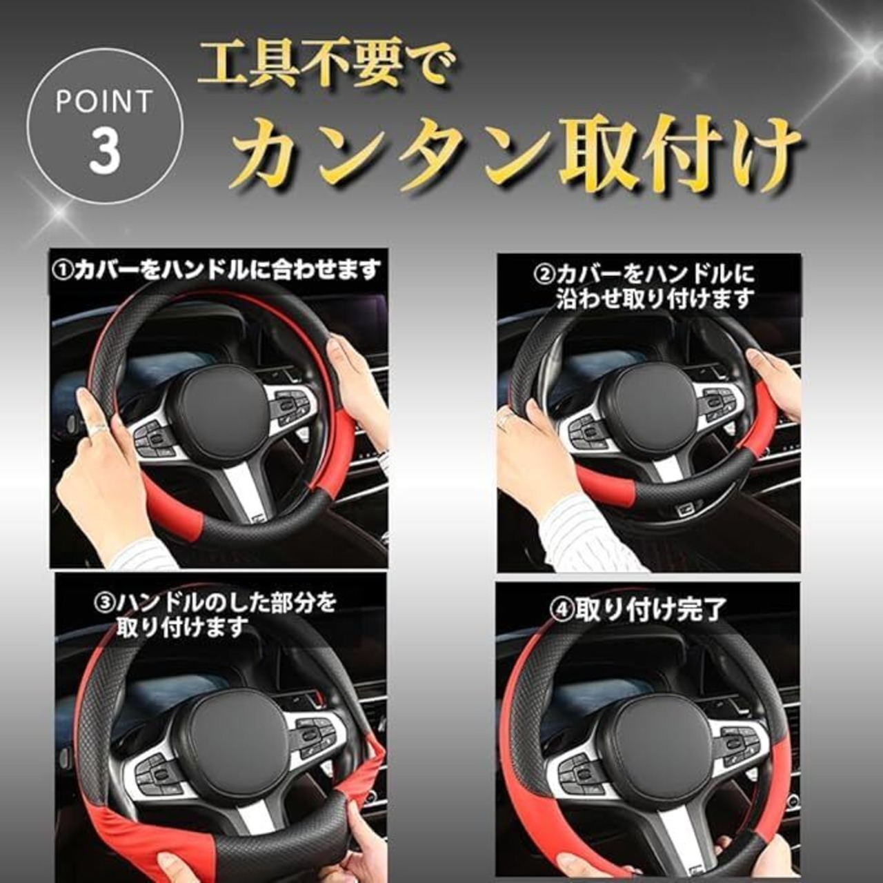 こちらの商品は、直径38cmのハンドルに対応しています。取り付けも簡単で、わずか数分でお手持ちの車に装着することができます。必要な工具は不要ですので、手軽にカスタマイズを楽しめます。