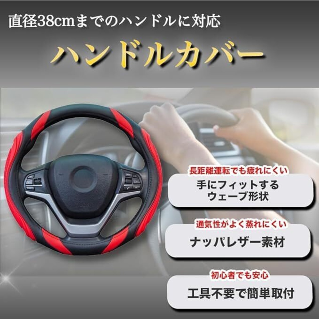 【在庫処分】UNPLUS ハンドルカバー 軽自動車 車 オシャレ ステアリングカバー PUレザー レッド 直径38cm 対応 (ブラック)