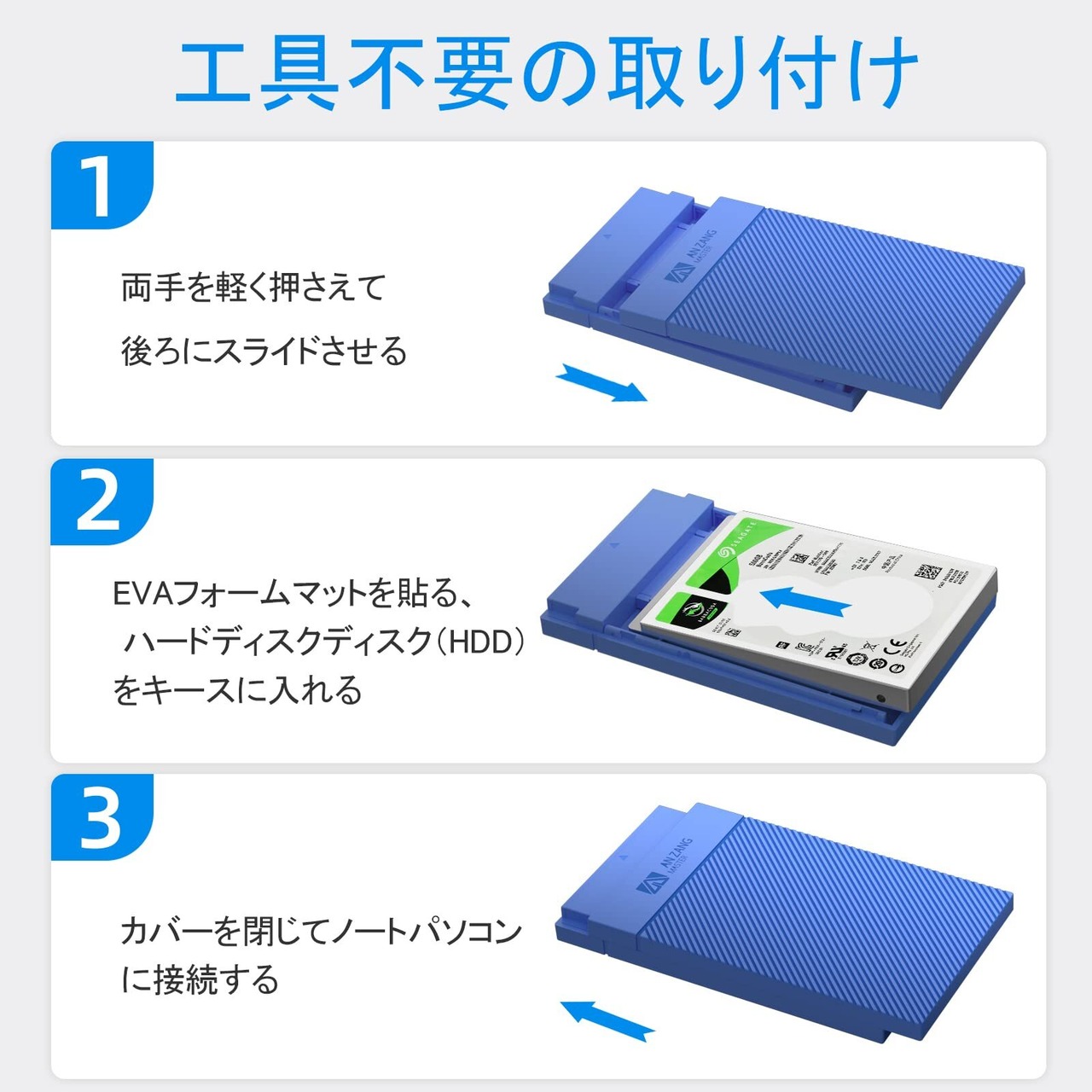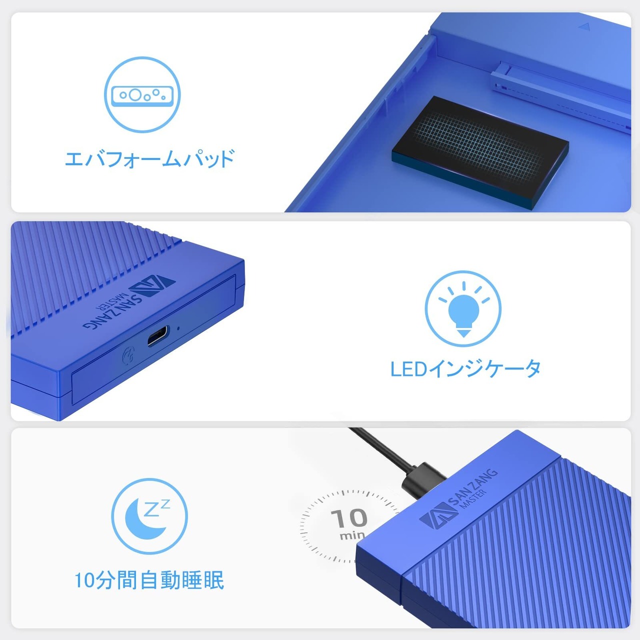 「SAN ZANG MASTER 2.5インチ HDD ケース」は、データを安全かつ快適に持ち運ぶための必須アイテムです!スタイリッシュなブルーデザインが特長で、どんなシーンでも活躍します。