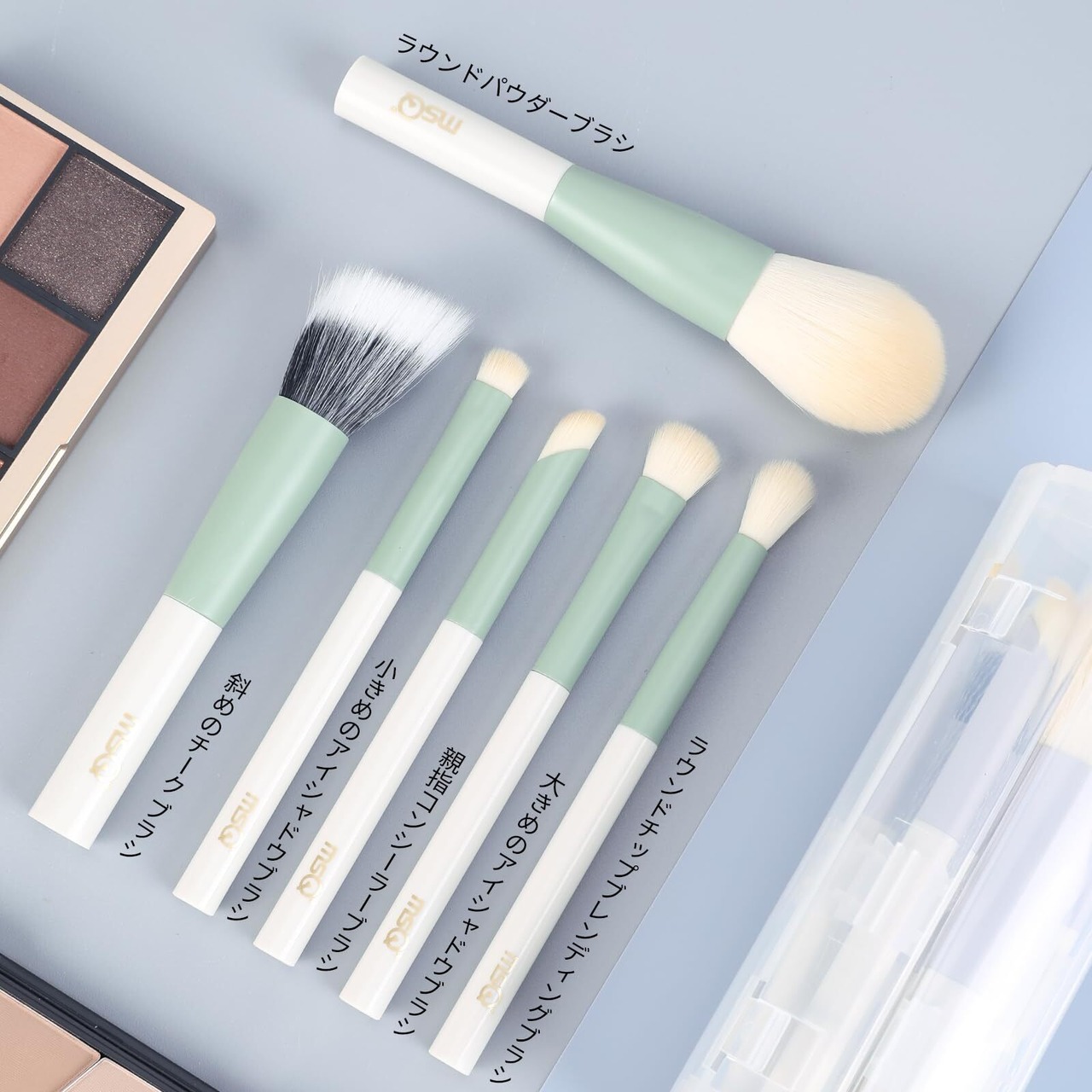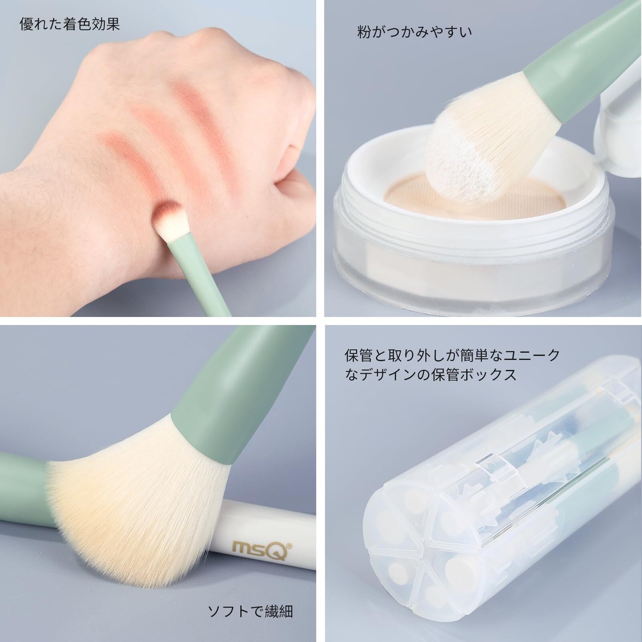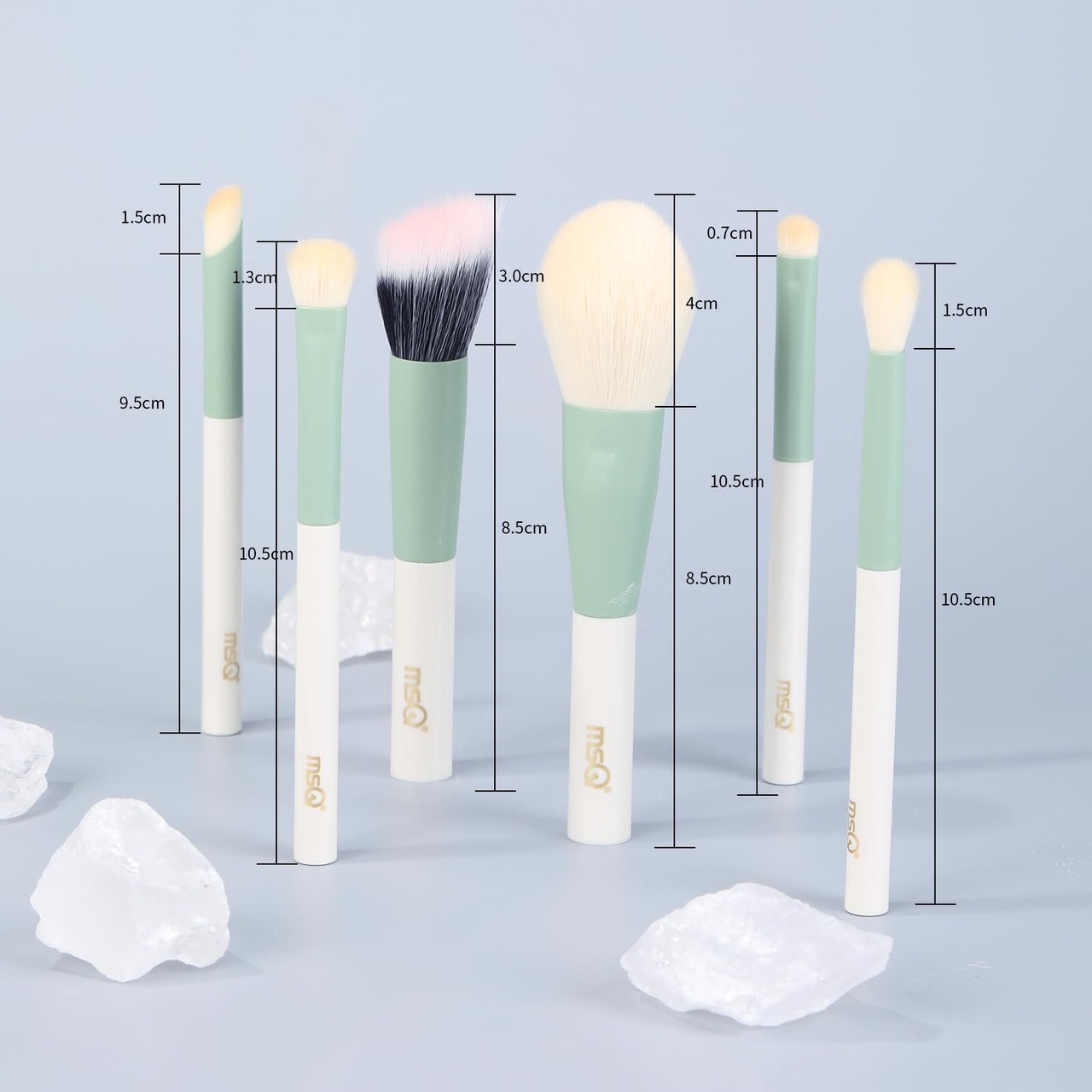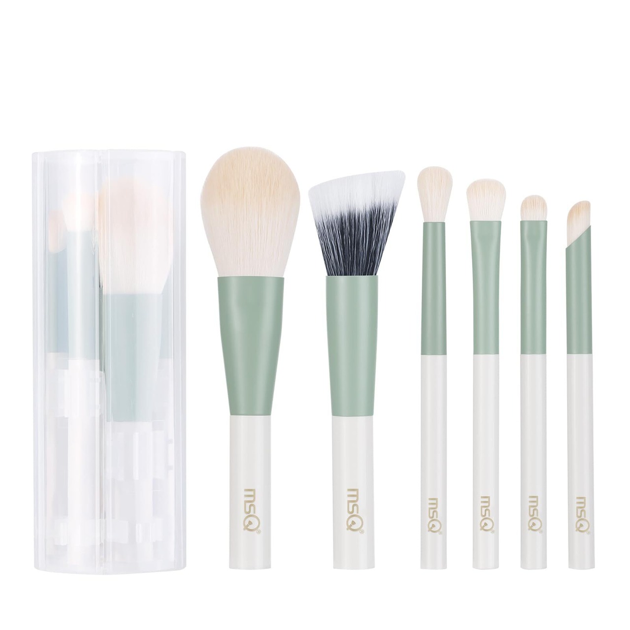 MSQメイクブラシ 6本セット 化粧ブラシ アイシャドウブラシ フェイスブラシ 化粧ブラシ 超柔らかい 保管が簡単ミニ メイク道具(グリーン)