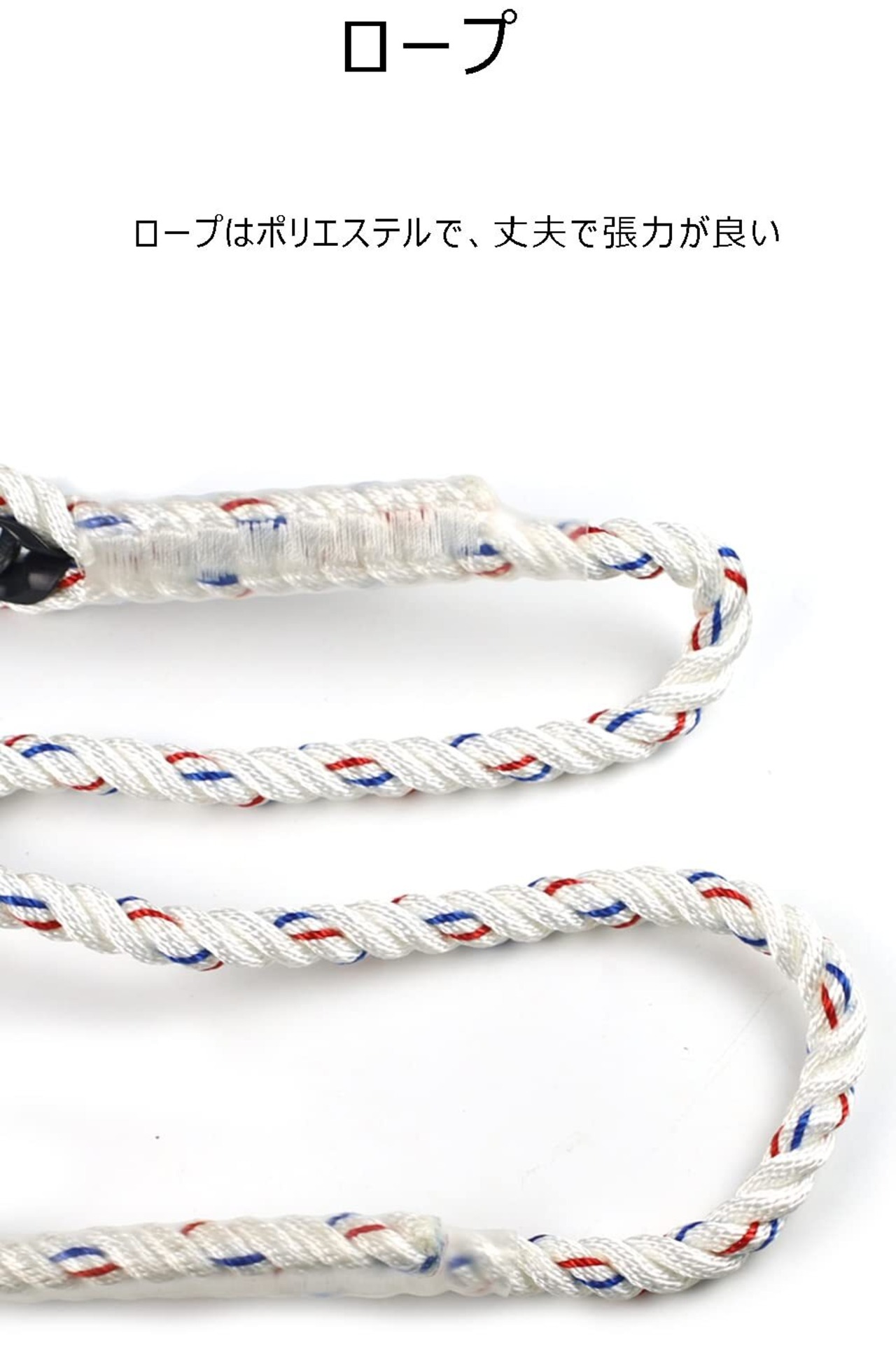 本製品は高所作業用の補助ロープとして、墜落のリスクを軽減します。両端にフックが付いており、迅速かつ簡単に取り付けることができ、作業の効率を高めます。安全第一で作業を行うための強力な味方です。