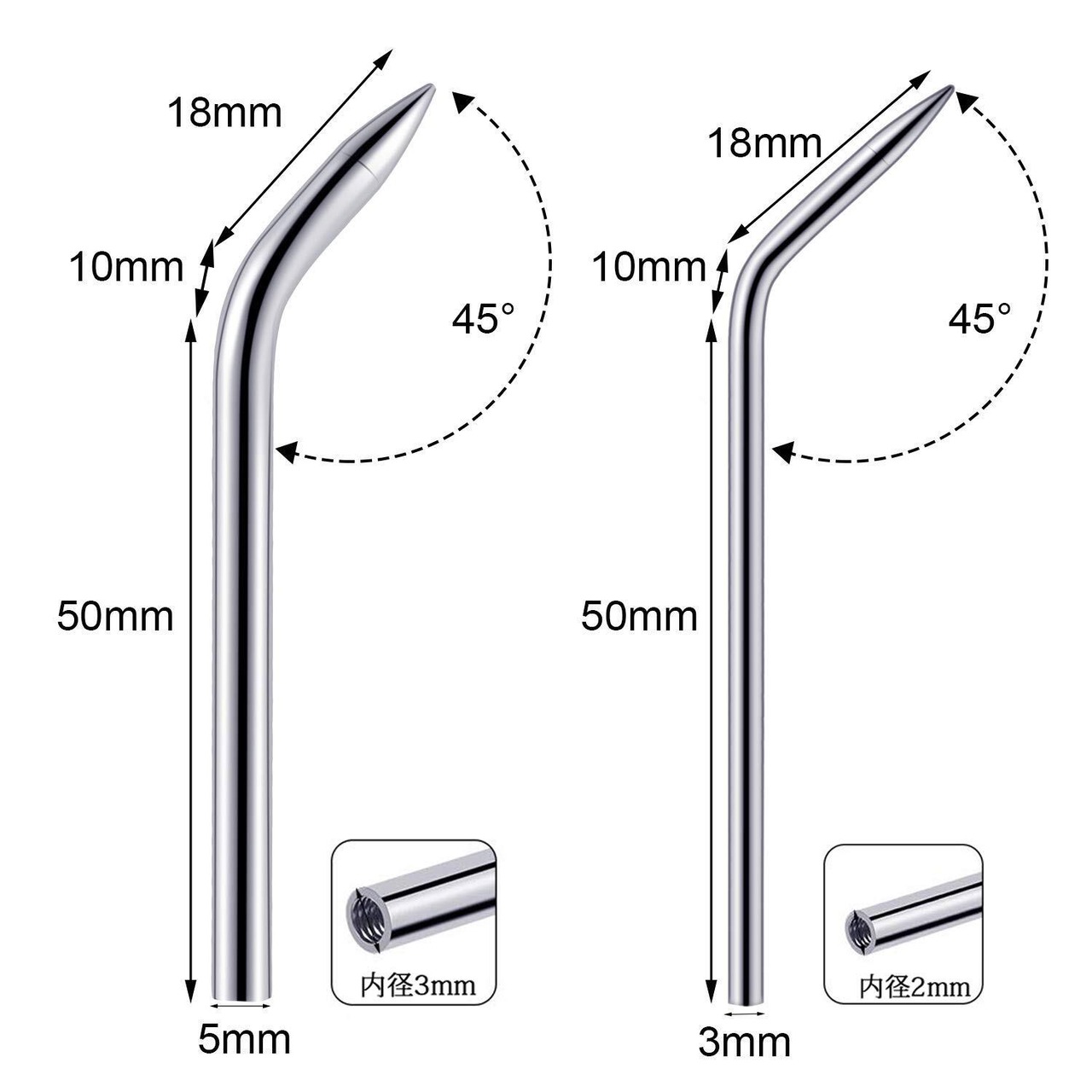 先曲げニードル/外径約3mm/5mm、内径約2mm/3mm、約45°曲げています。