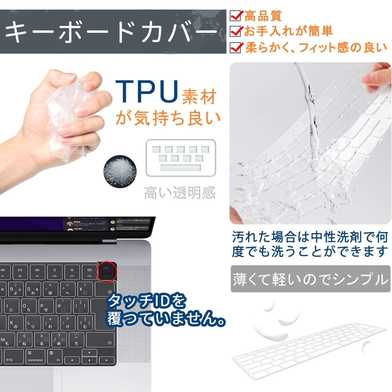 【防水・防塵】キーボードは耐摩耗性が特徴。ホコリ、汚れ、水などからMacBook 液晶 画面、キーボードを保護できます。キーボードフィルムはリサイクルでき、汚れたら中性洗剤で何度も洗うことができます。