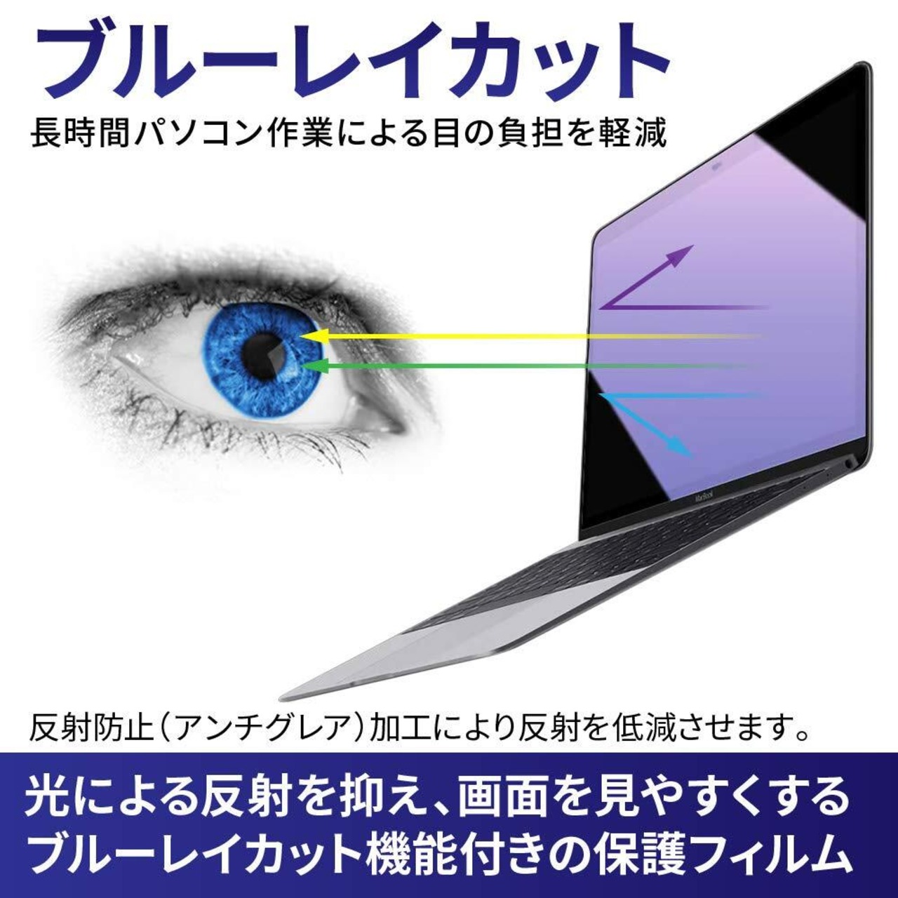 【ブルーレイカット機能付きアンチグレア液晶画面保護フィルム】 汚れがつきにくく、指紋が拭き取りやすい。光の反射を抑え画面が見やすいアンチグレア加工。 目に優しいブルーライトカット機能付きです。