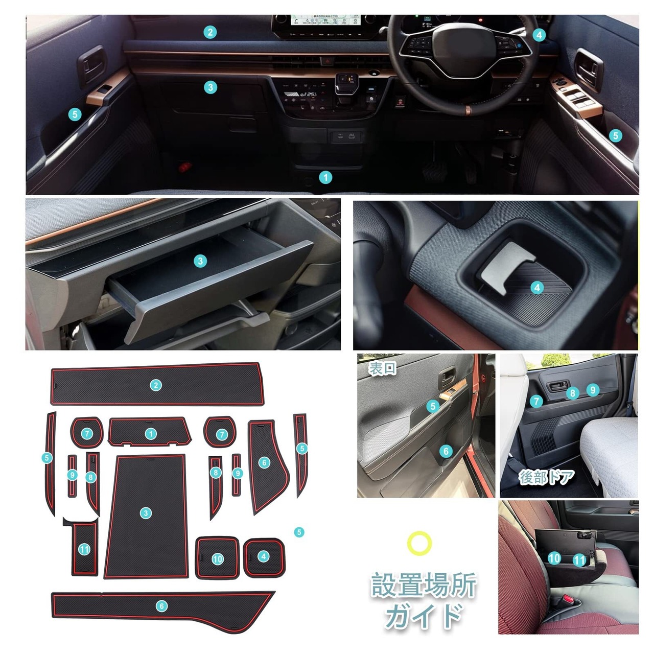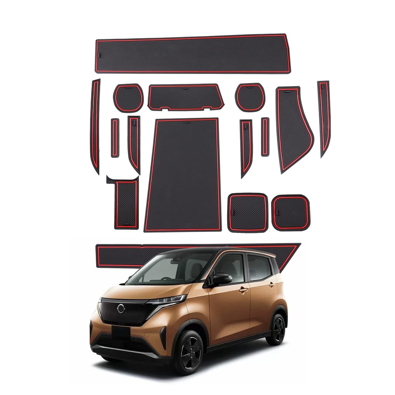 SHAOHAO 新型 日産 SAKURA サクラ B6系 2022.6~インテリア ラバーマット 車種専用 ドアポケットマット ゴムマット コンソールマット ドレスアップパーツ 内装パーツ アクセサリー 騒音防止 ノンスリップマット 滑り止めマット 16枚 レッド