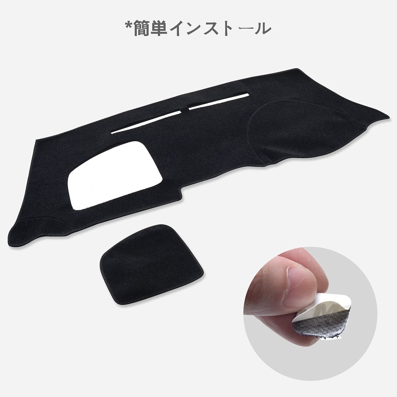 マットをダッシュボードに合わせるだけで簡単に取り付けが可能です。取り付けの際に必要なテープなども同梱されているので、手間いらずでお使いいただけます。