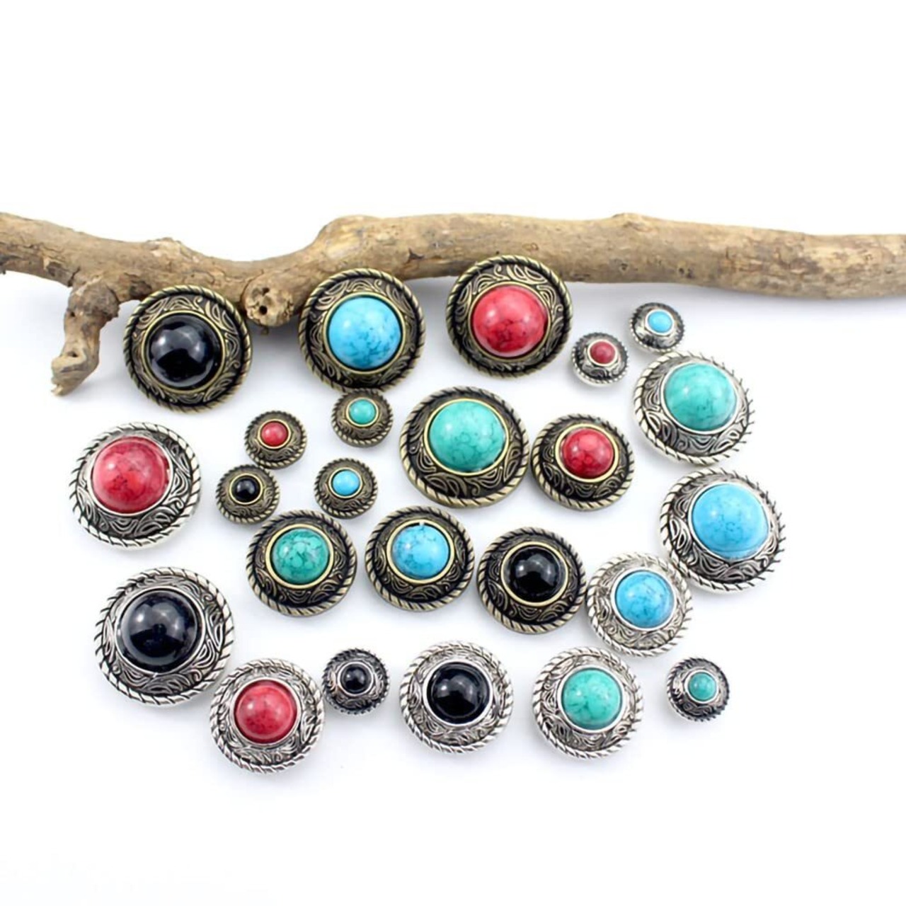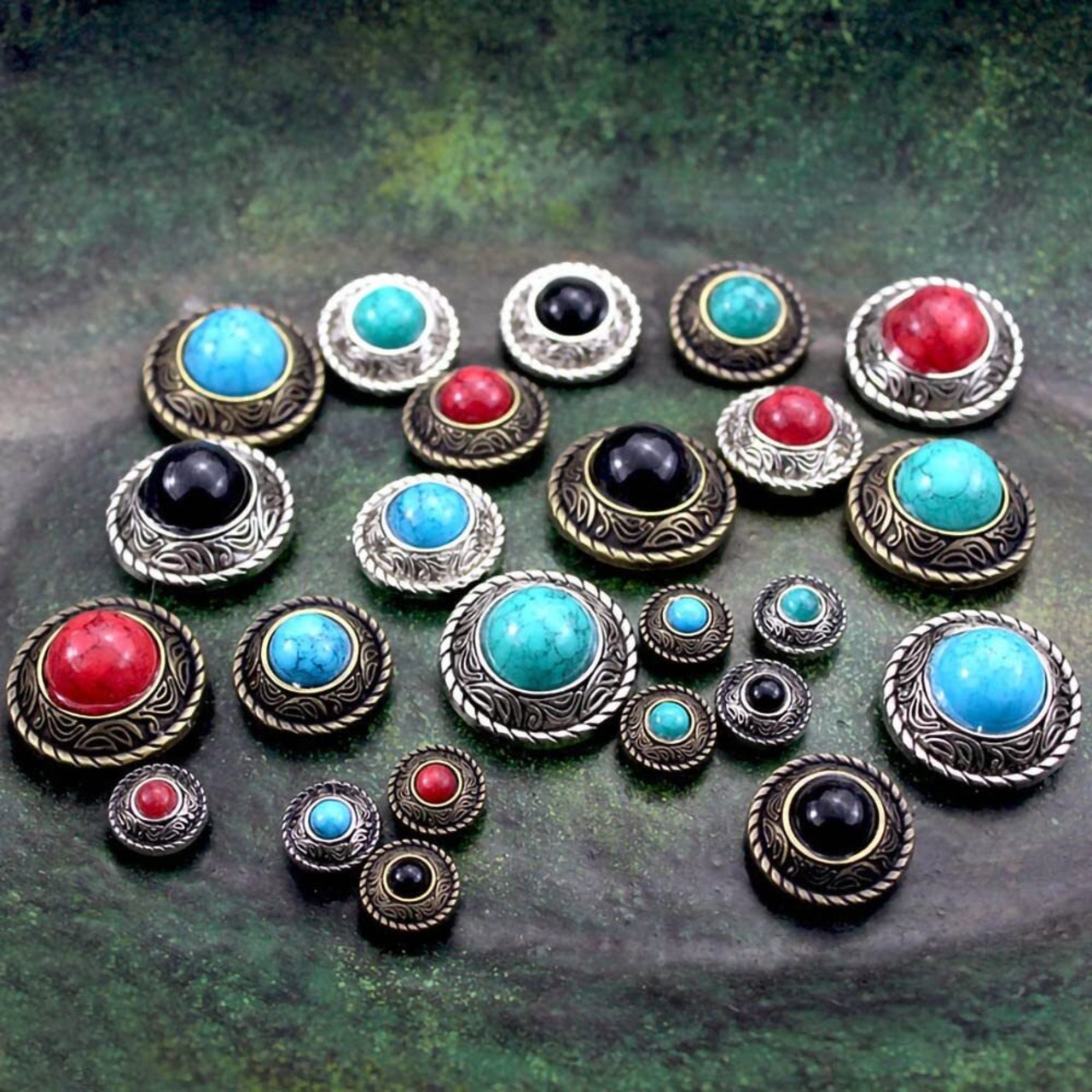 【幅広く応用】:ネイティブ系の財布・バック・ベルト・ブーツ・ポシェット・キーホルダー・スマートフォンケースなどのハンドメイド製品に幅広くお使い頂けます。レザー・布・TシャツヤーンのDIY作品に最適な装飾ボタンです。