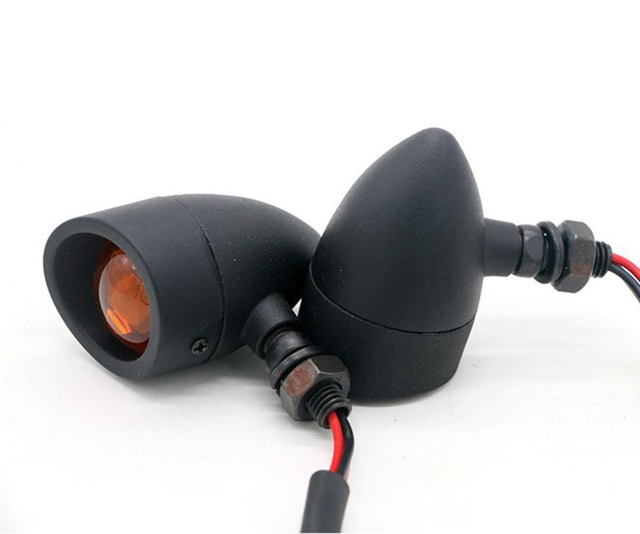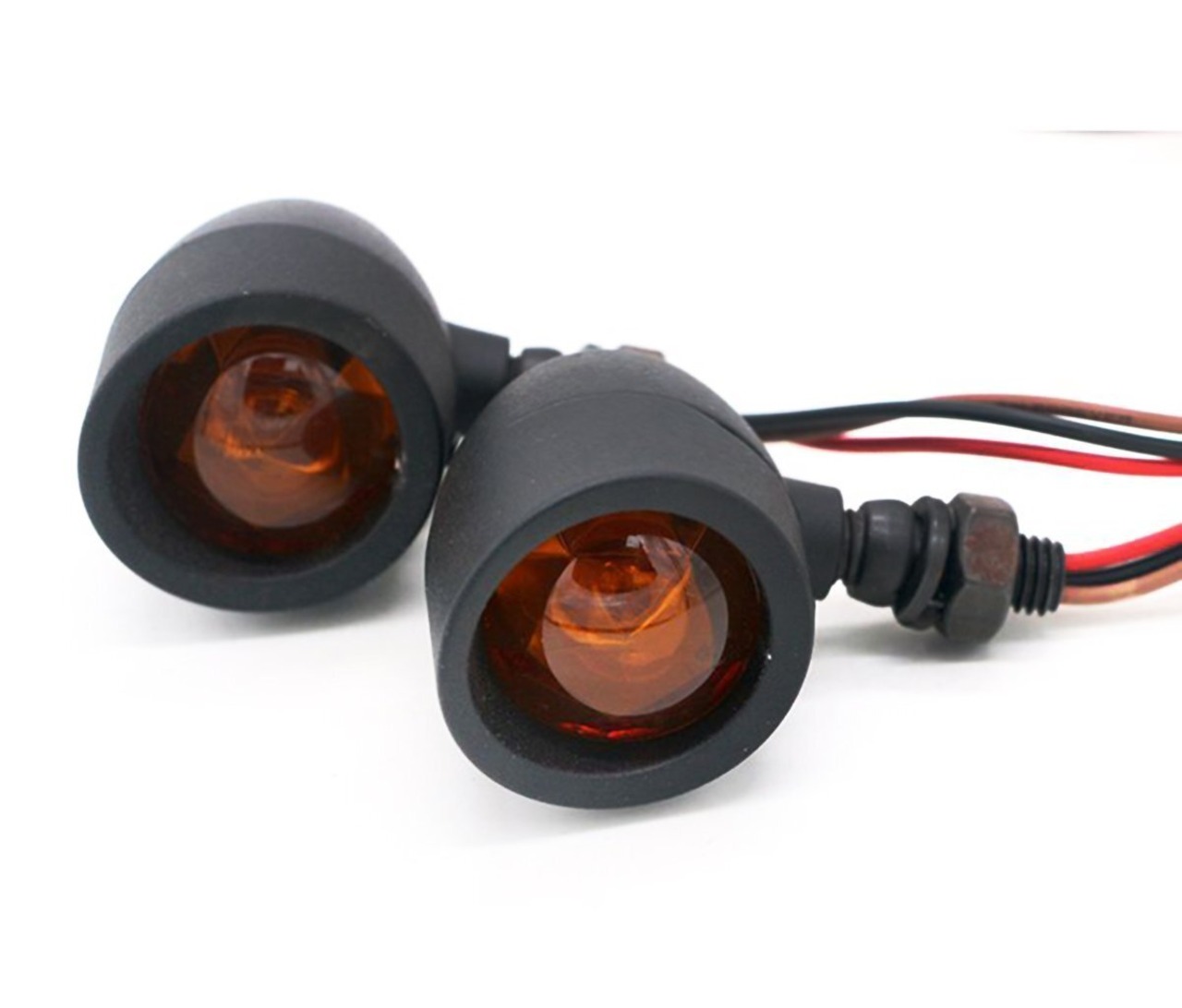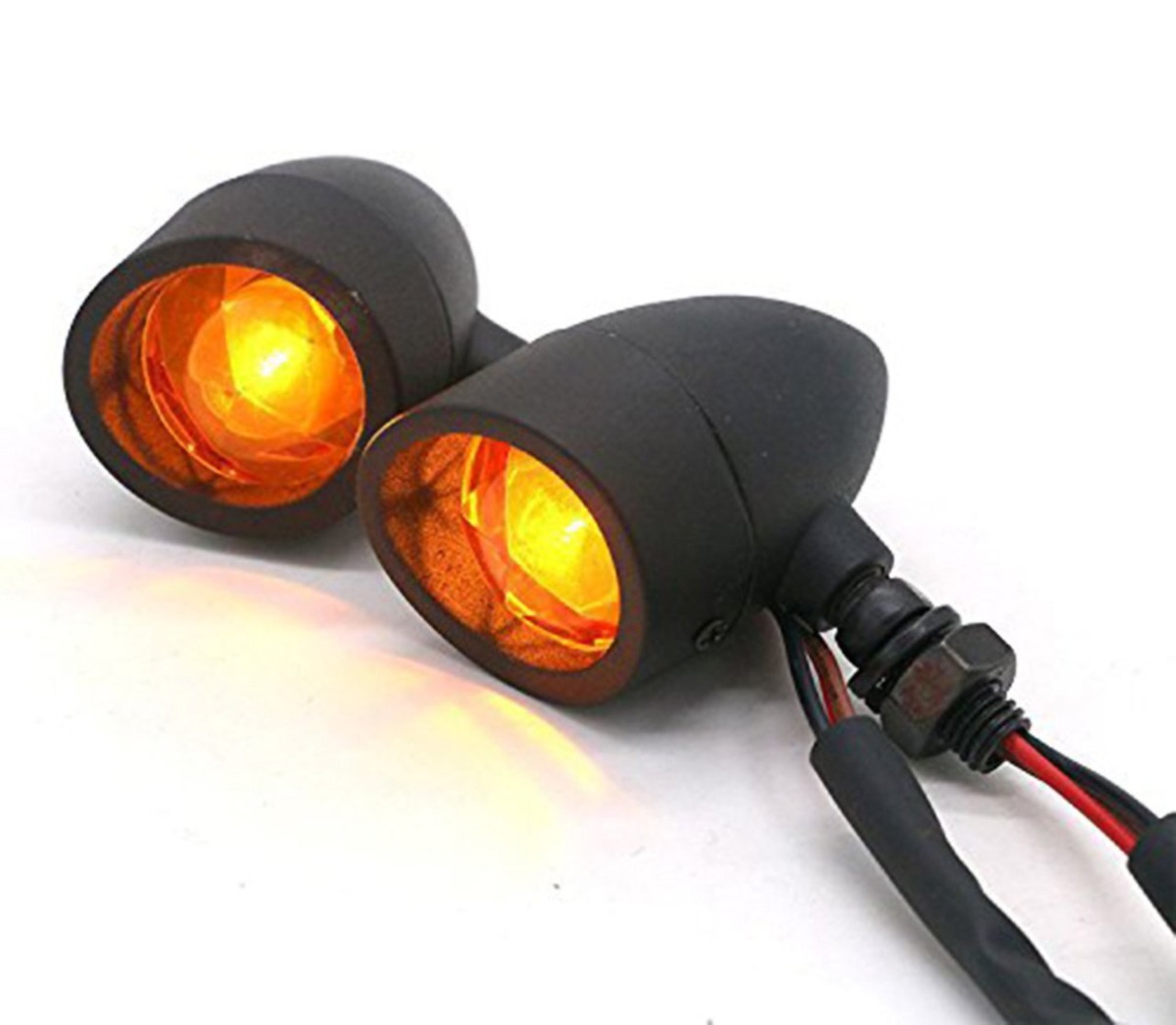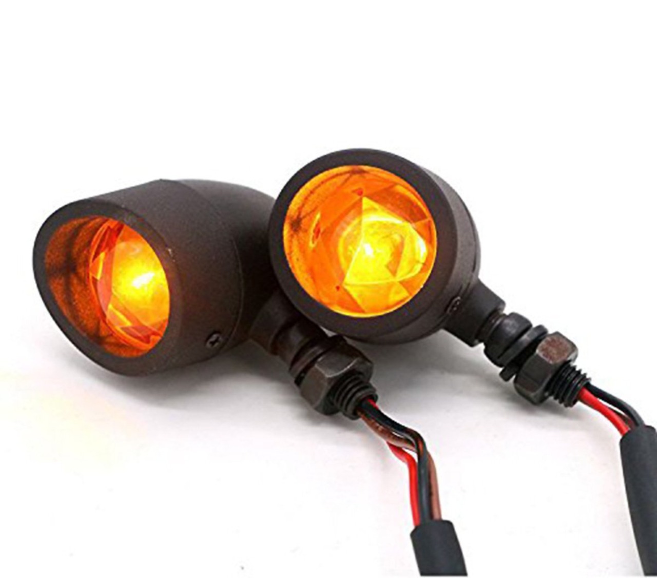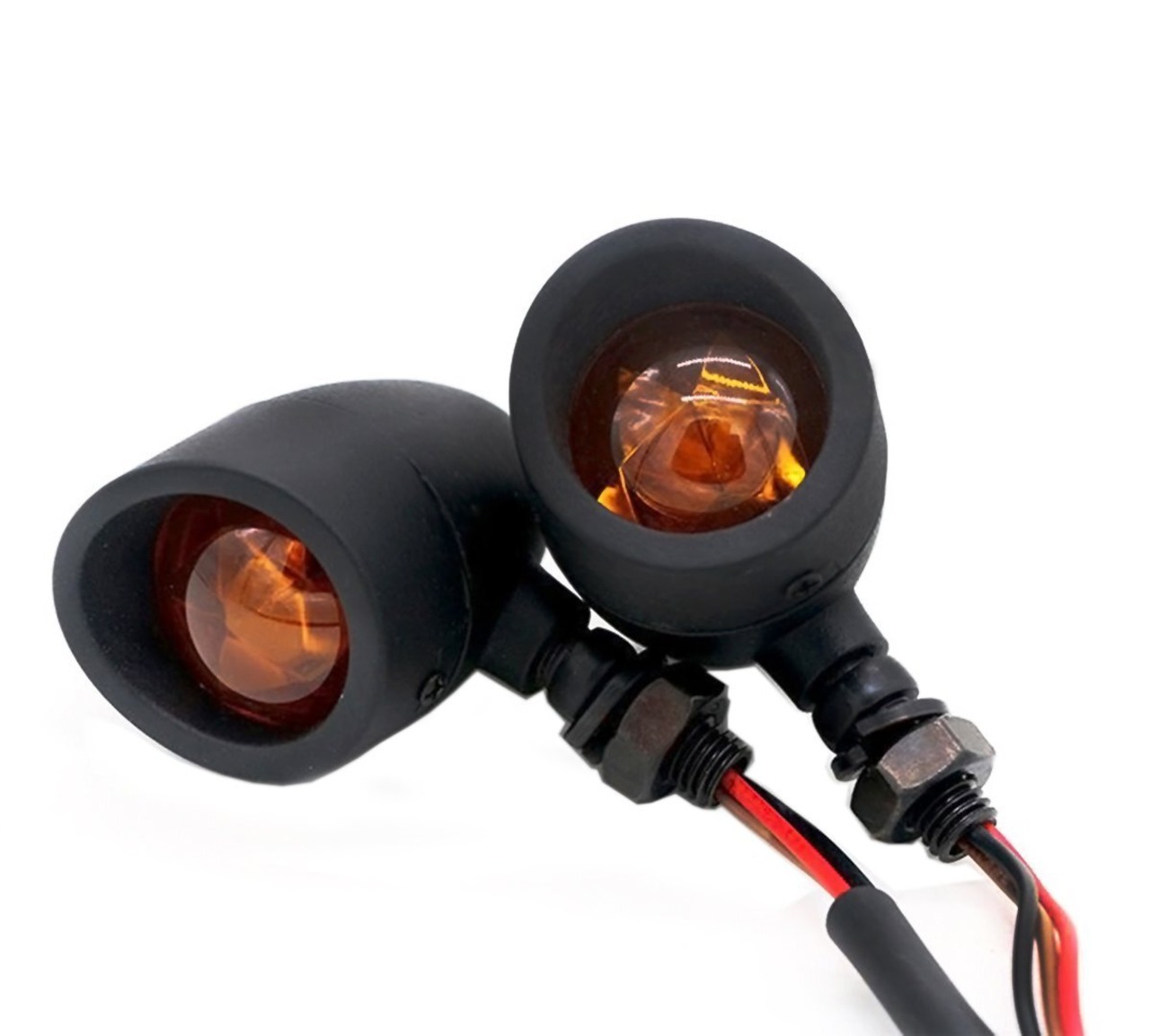 このウインカーは、鮮やかなアンバーのライトを搭載しており、夜間の視認性を向上させます。カスタムバイクやネオクラシックスタイルのバイクにもぴったりです。