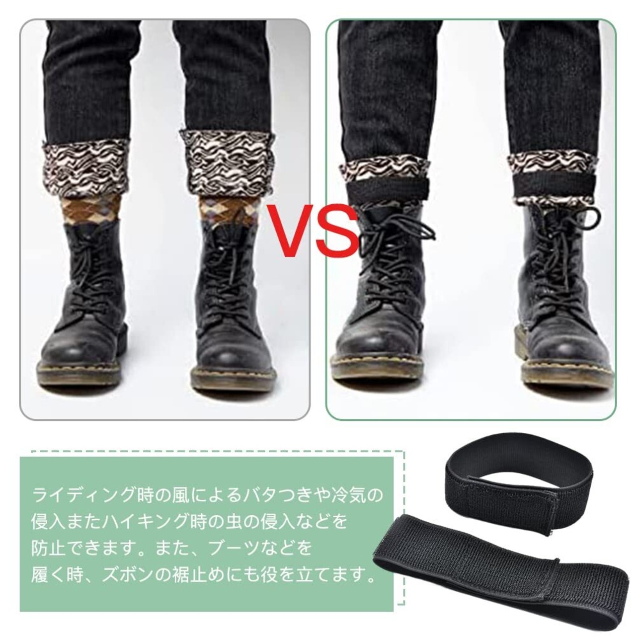 【製品内容】幅:3/3.8/5cm、長さ:40cm。個数:ズボン裾止用めバンド1組/2本セット。色:ブラック。調整範囲:30cm-55cm。