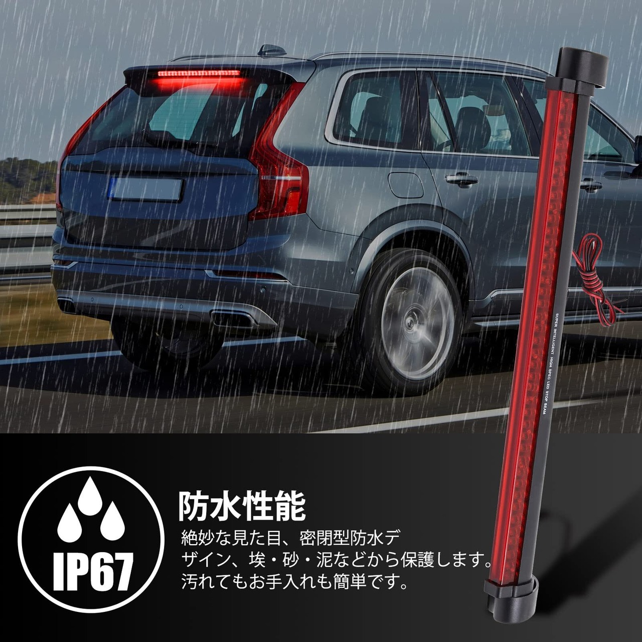汎用性が高く、様々な車両に取り付け可能です。サードブレーキライト、ブレーキランプ、テールランプとして利用でき、あらゆるシーンで安心してお使いいただけます。