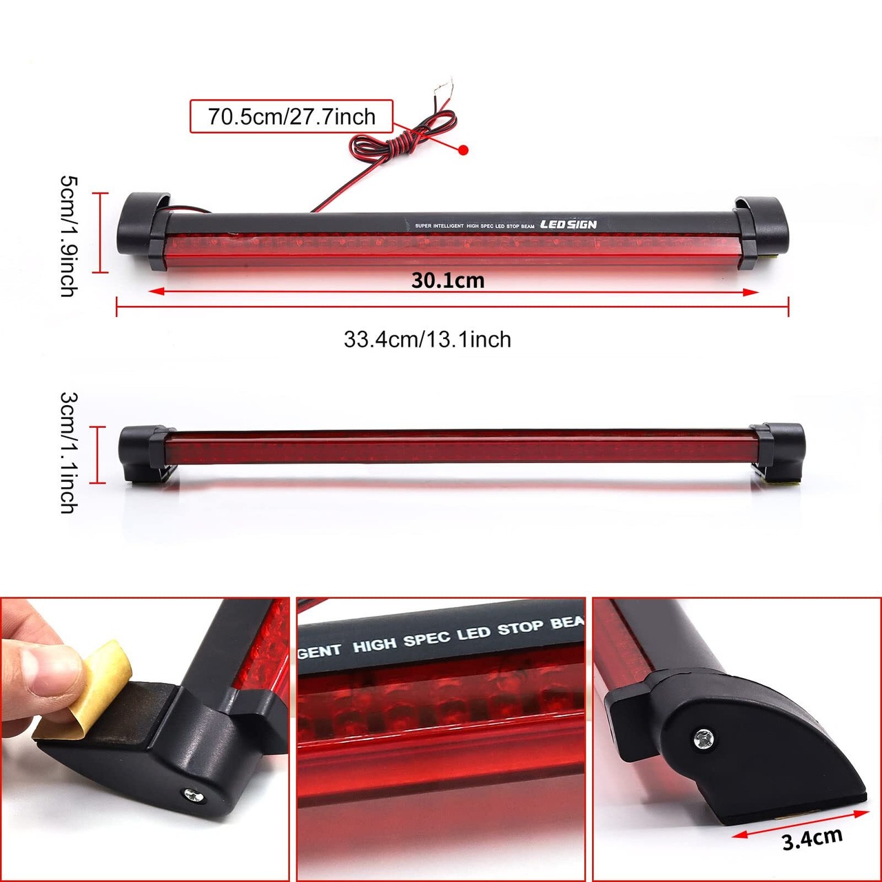 【製品詳細】サイズ(L*W*H):約705*50*30mm / 配線:約705mm / 電圧:12V / 材質:ABSプラスチック / 発光色:レッド