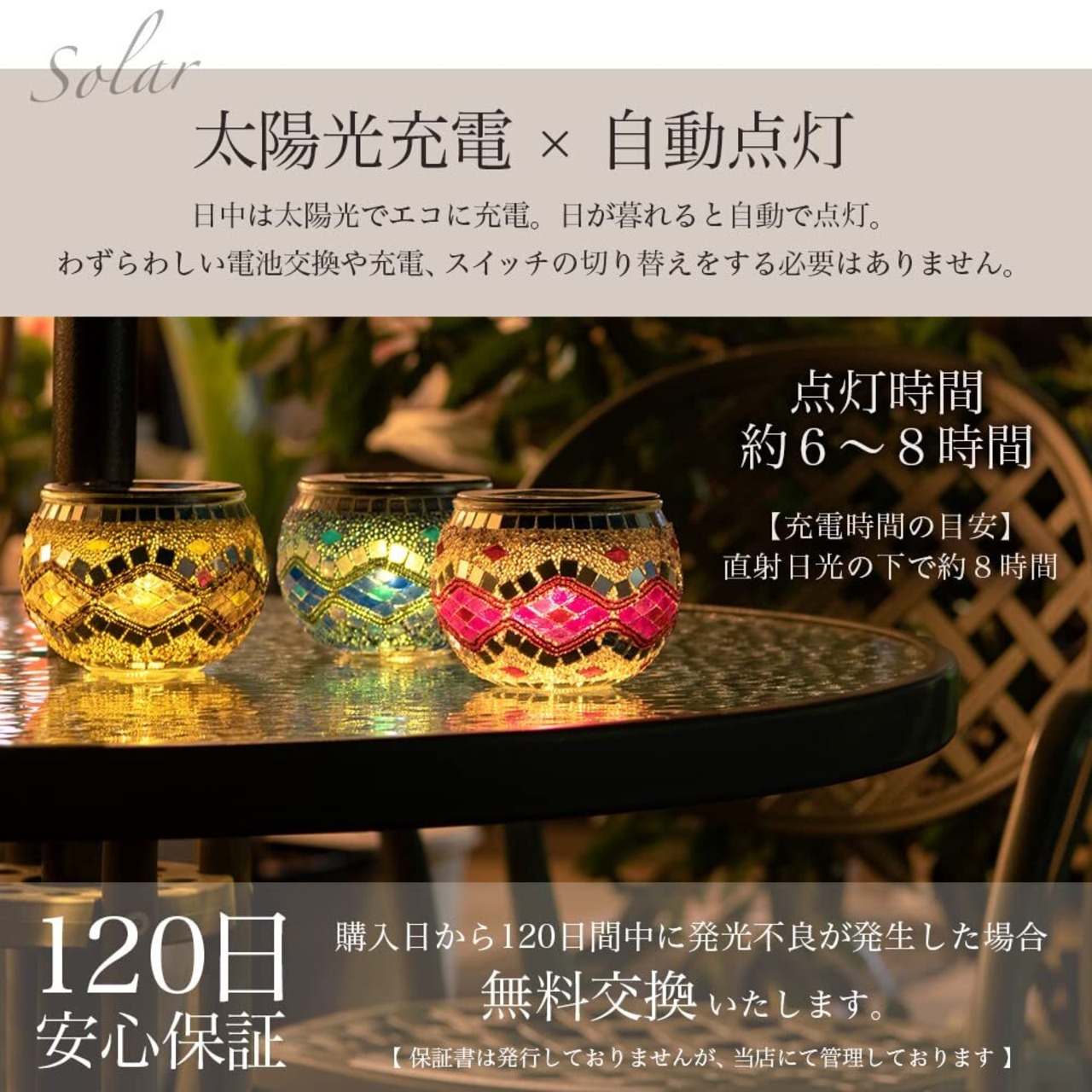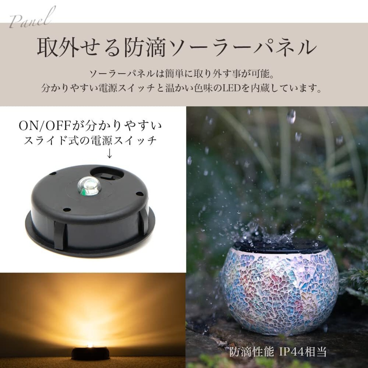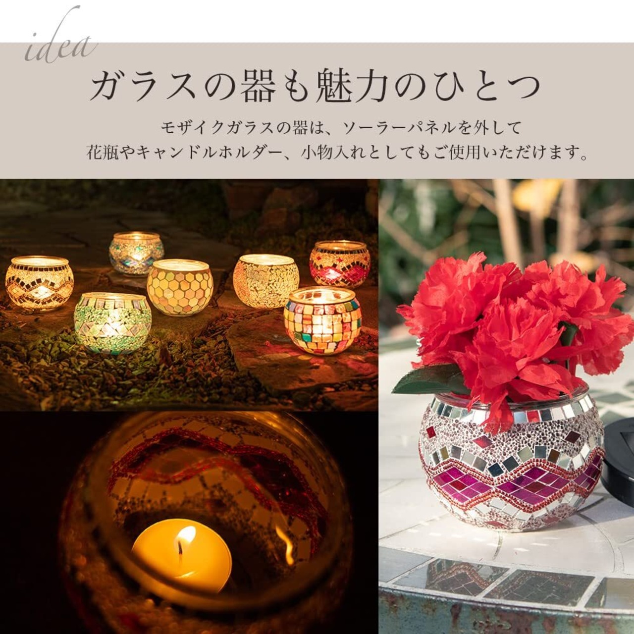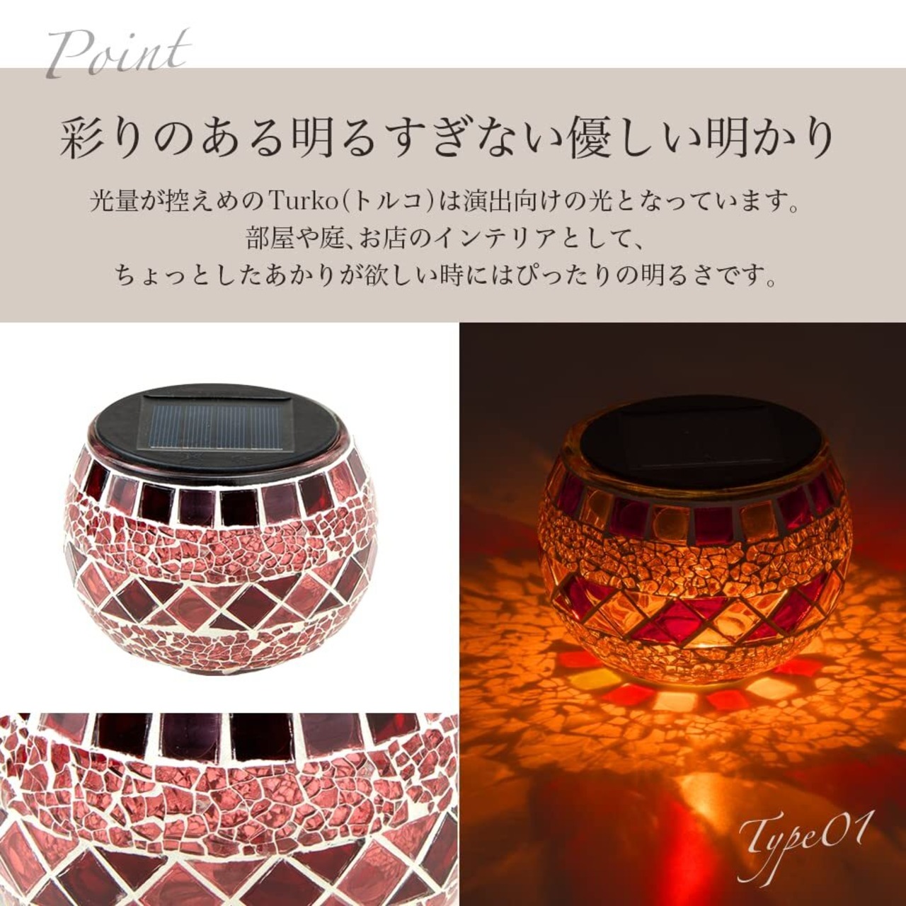 Turko ソーラー ガーデンライト モザイク ガラス ランプ LED 照明 屋外 防雨 ステンドグラス テーブルライト ランタン ライト トルコ モロッコ 雑貨 おしゃれ (Type01)