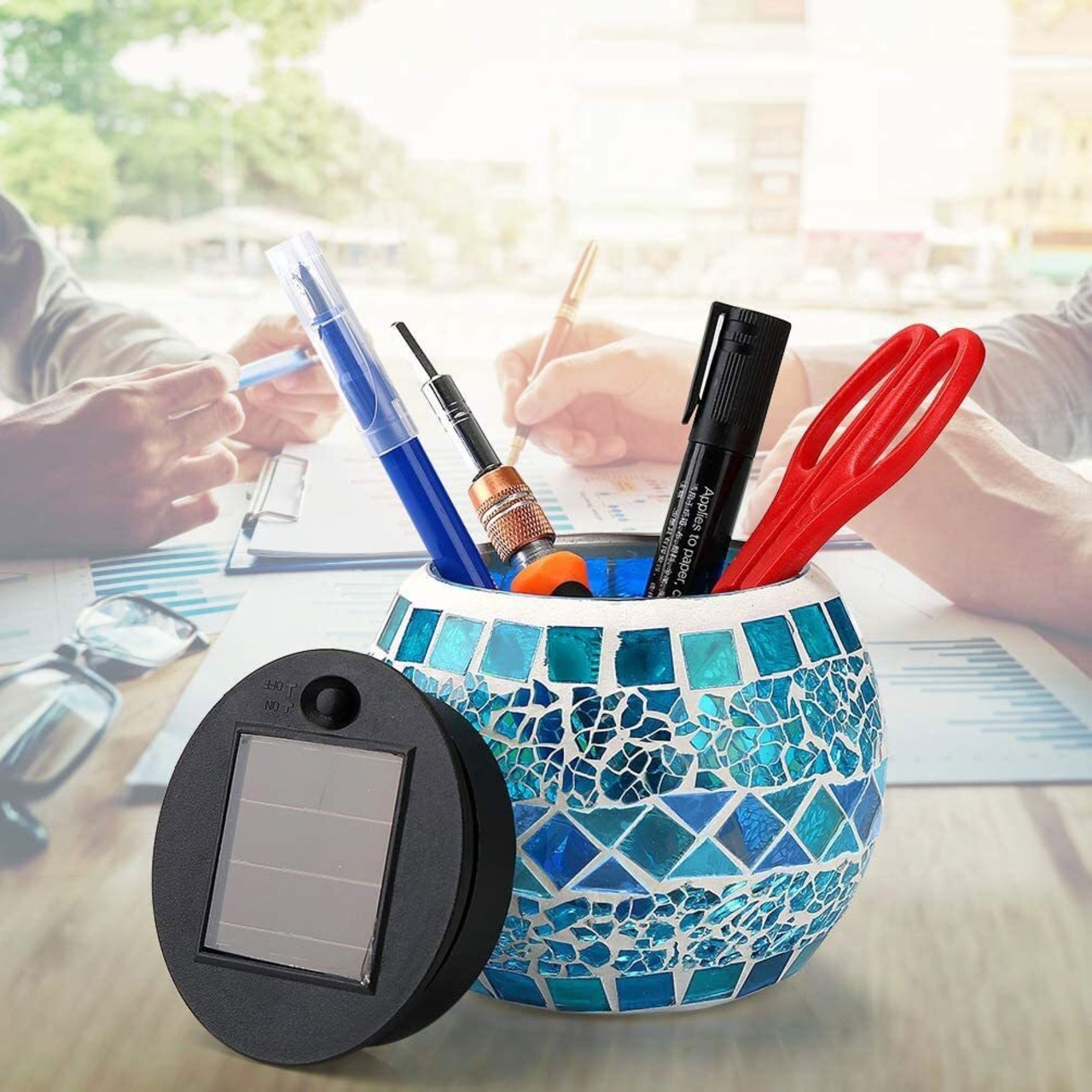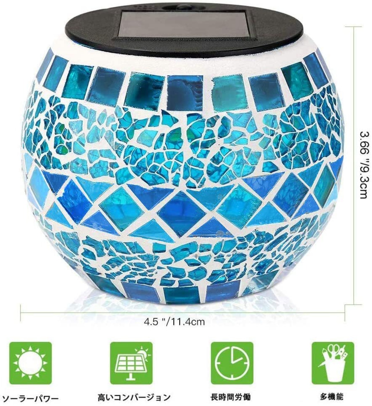 「LEDGLEソーラーライト」は、庭やベランダ、お玄関などを美しく演出するためにデザインされたアイテムです!モザイクガラスの幻想的な光と、便利なソーラー充電式が特徴です。