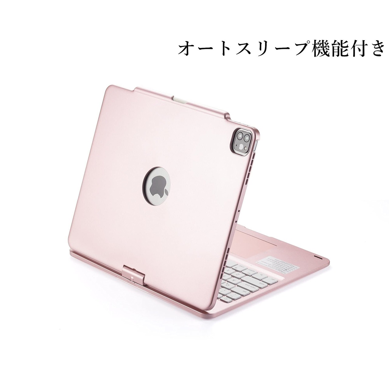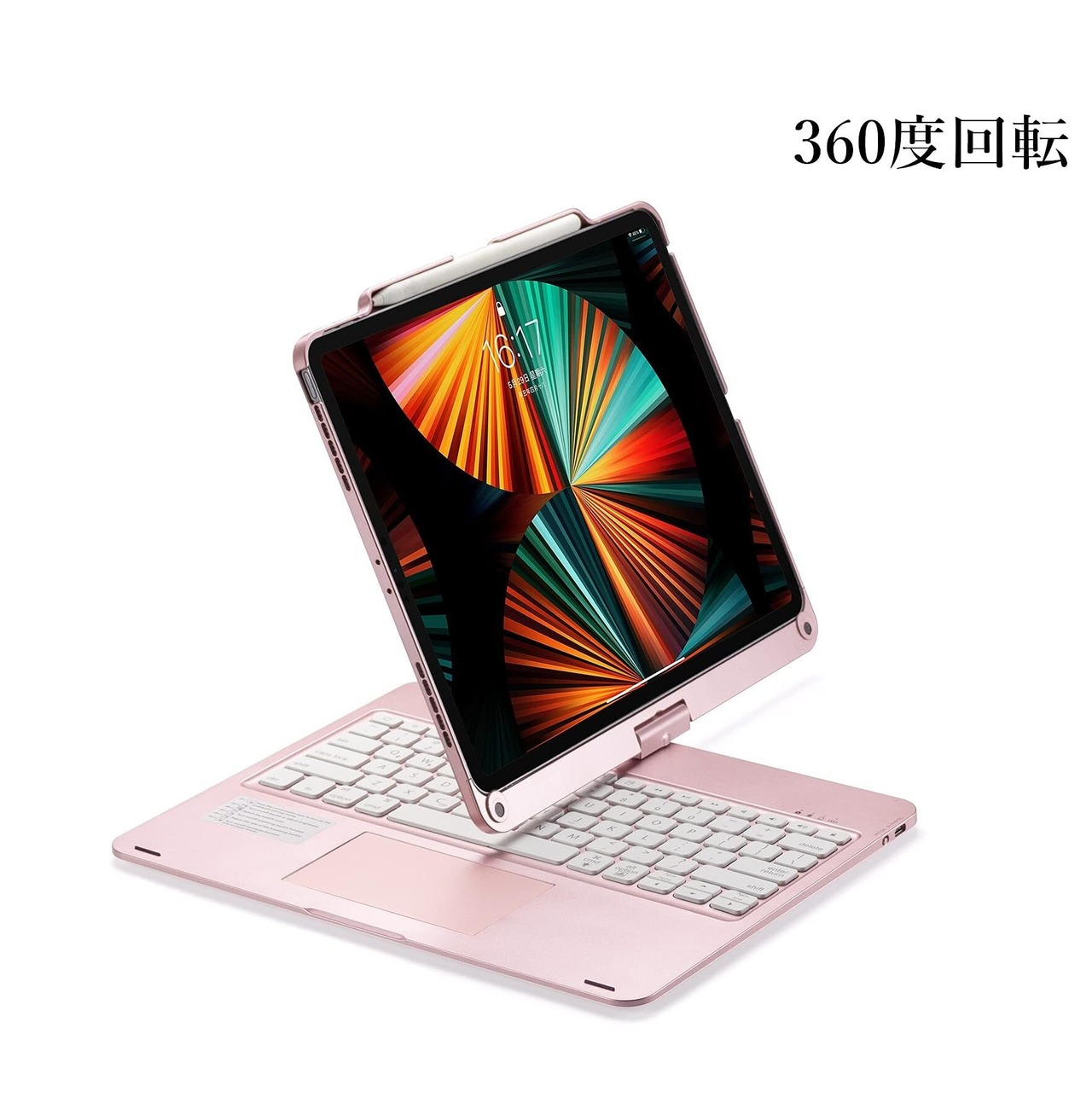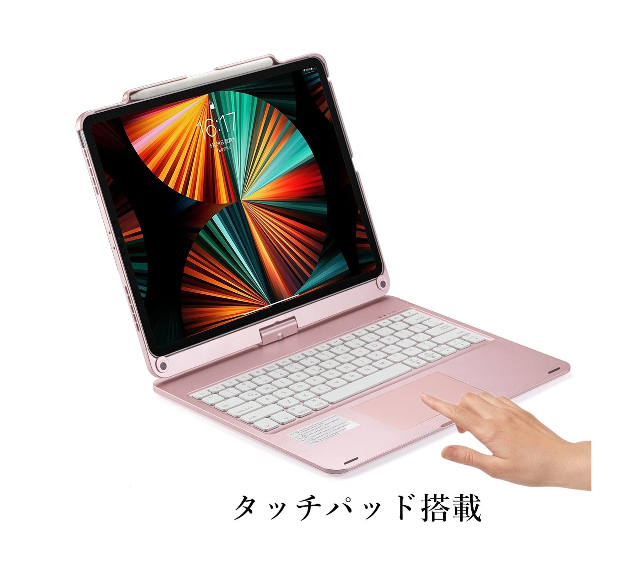 【新着商品】360度回転 2025 2024 iPad Air 13インチ (M3/M2) キーボード タッチパッド搭載 iPadPro12.9 第6/5/4/3世代 キーボードケース 一体型 バックライト 折り畳み カバー トラックパッド Apple Pencil 充電 収納可能 (ローズ金)