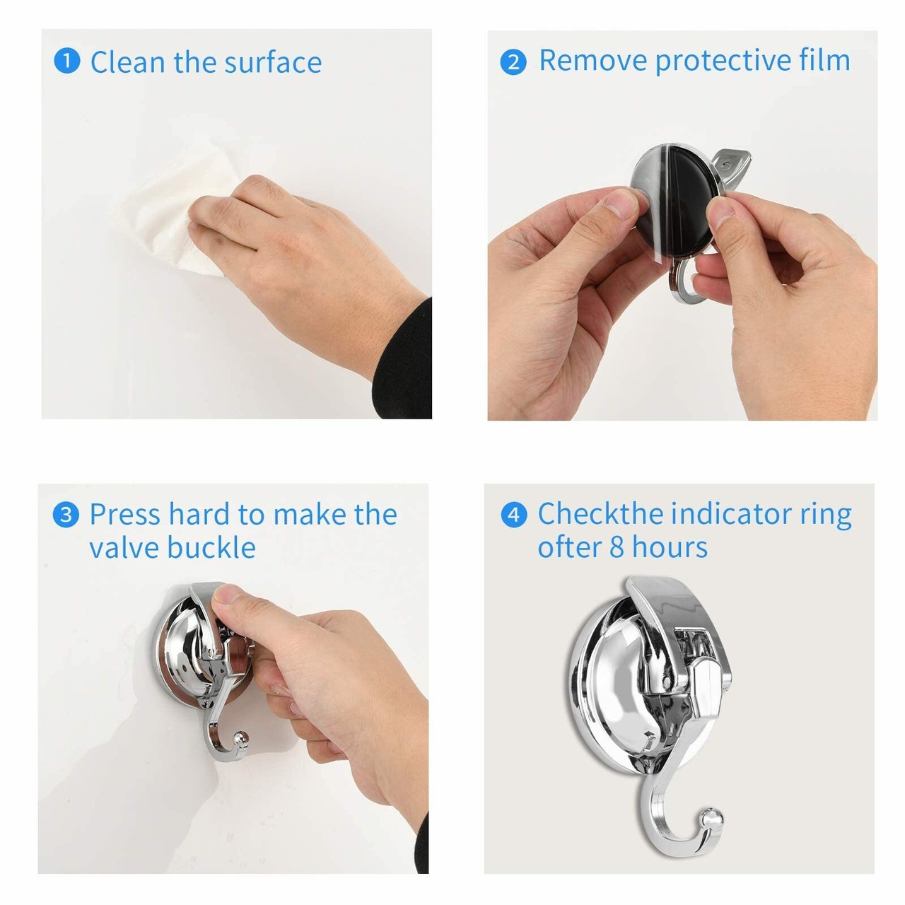 使用上のヒントと注意: このアイテムは、研磨されたセラミックタイル、鏡、ガラス窓、光沢仕上げのステンレススティール壁やプラスチックボードなどの非多孔質で滑らかな表面のみに使用できるフック2個パックです。粗いコーティング面、研磨されていない大理石、木製ドア、でこぼこな磁器表面などといった、多孔質な凸凹で粗いテクスチャー表面にはお使いいただけません。