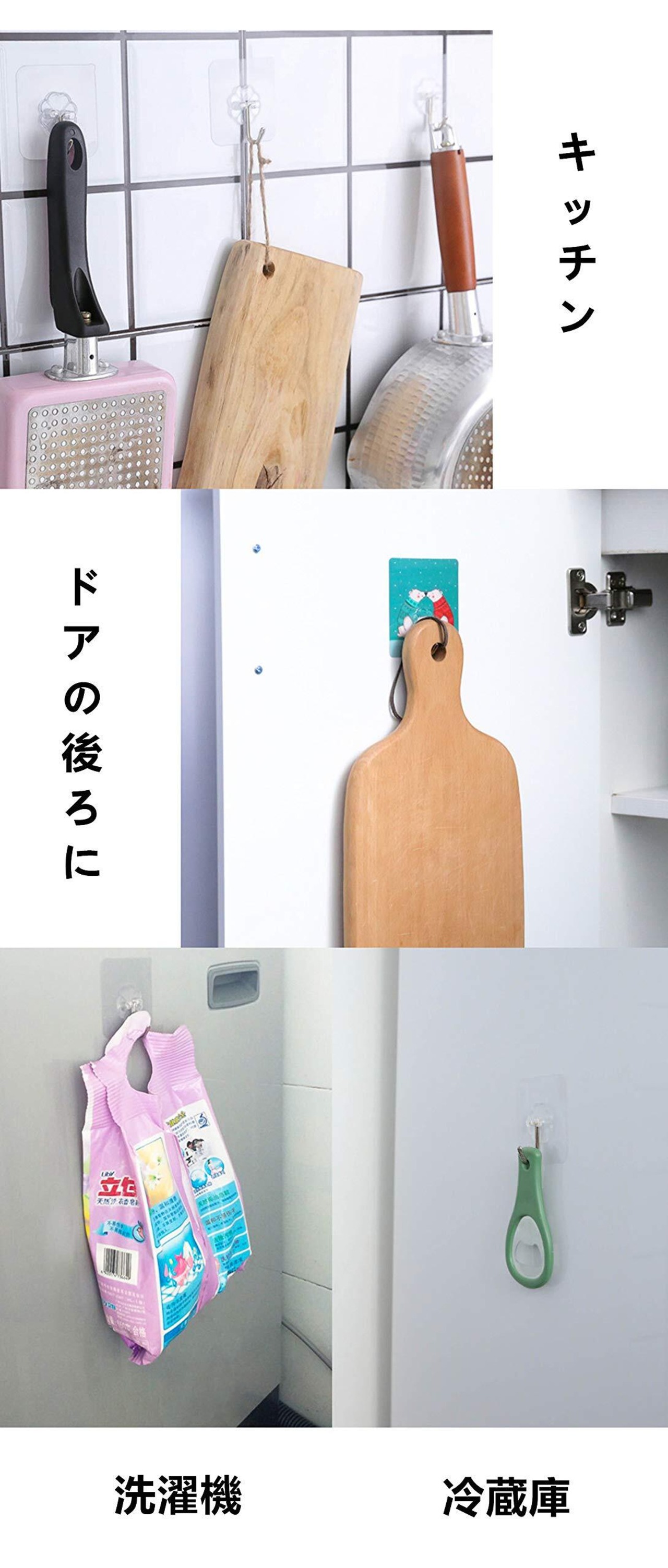 透明なフックはどんな場所でも自然に溶け込み、デザイン性も高いので、リビングや寝室、オフィスなど多様なシーンで活躍します。様々なアイテムを整理し、生活空間を快適に保ちます。