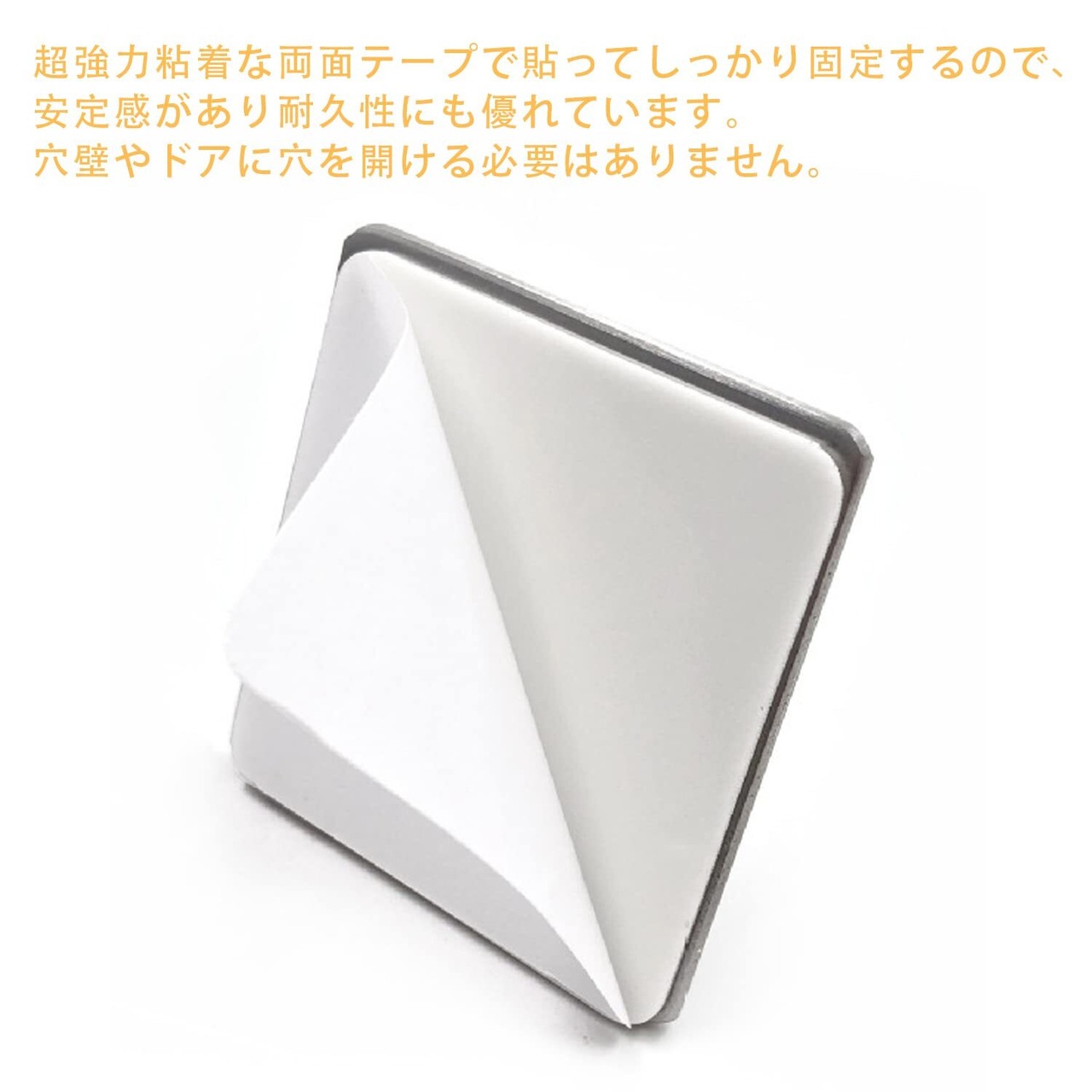 このフックは特別に設計された強力な粘着テープを使用しており、穴を開けたり、壁を傷めることなく簡単に取り付けが可能です。すぐに使えるので、賃貸物件でも安心してご利用いただけます!