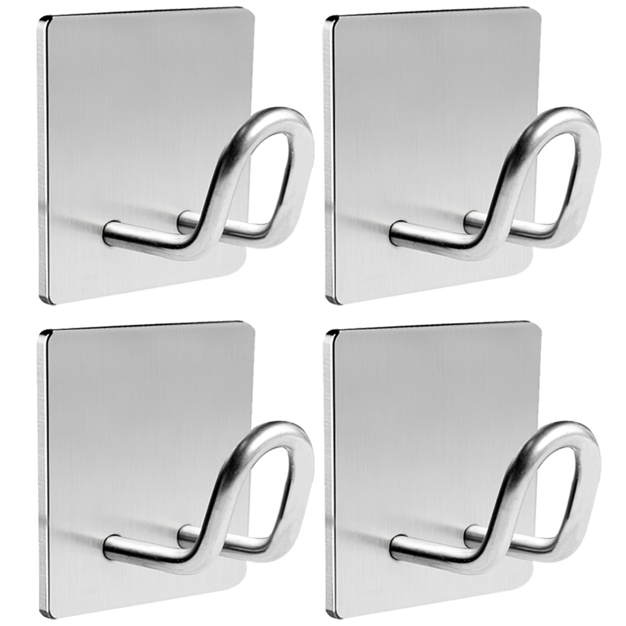 WOMLEX フック 粘着 壁掛けフック 壁付け フック 傷つけない カバン 収納 タオルフック 玄関ドア フック ステンレス製 防錆 防水高耐久 ダブル 垂直耐荷重 5kg キッチン用 オフィス用 浴室 お風呂用 (4個セット シルバー)