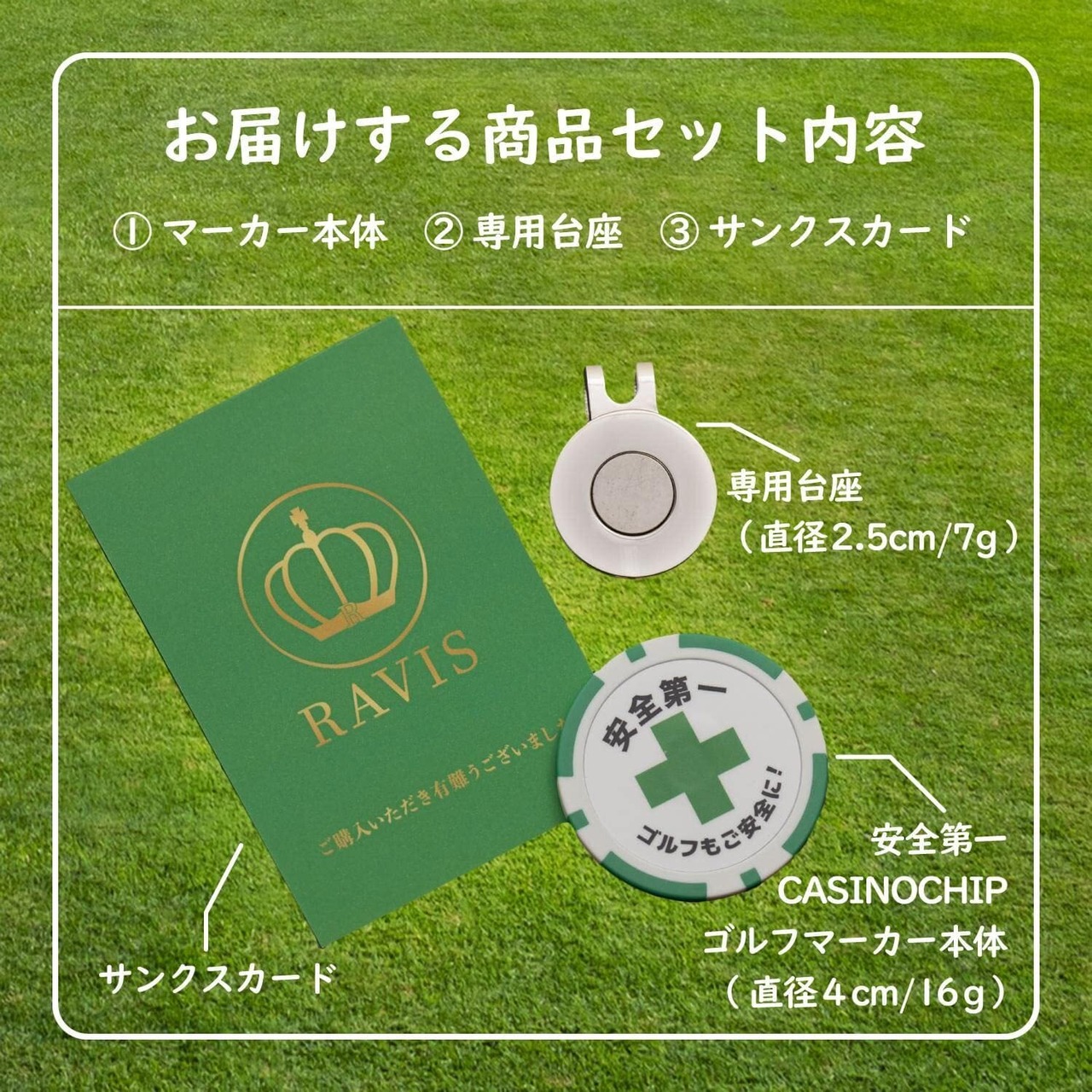 RAVIS ゴルフ マーカー おもしろ チップマーカー 安全第一 マグネット 台座セット ラウンド用品 参加賞 グランドゴルフ おしゃれ 景品 標語 名言 格言 ( Safety First )