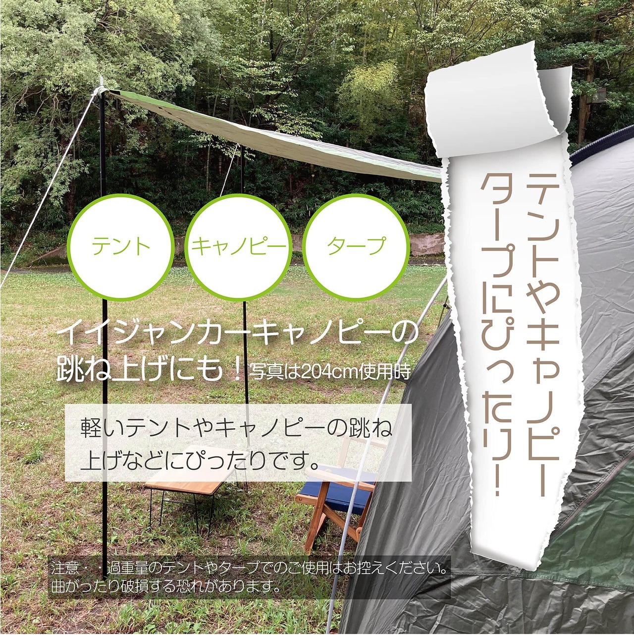 【5段階調節可能】2節71cm~6節204cm(先端4.5cm含む)の5段階調節が可能です。テントやタープによって細かい高さの調節ができるので、色々な場面で使用が可能です。