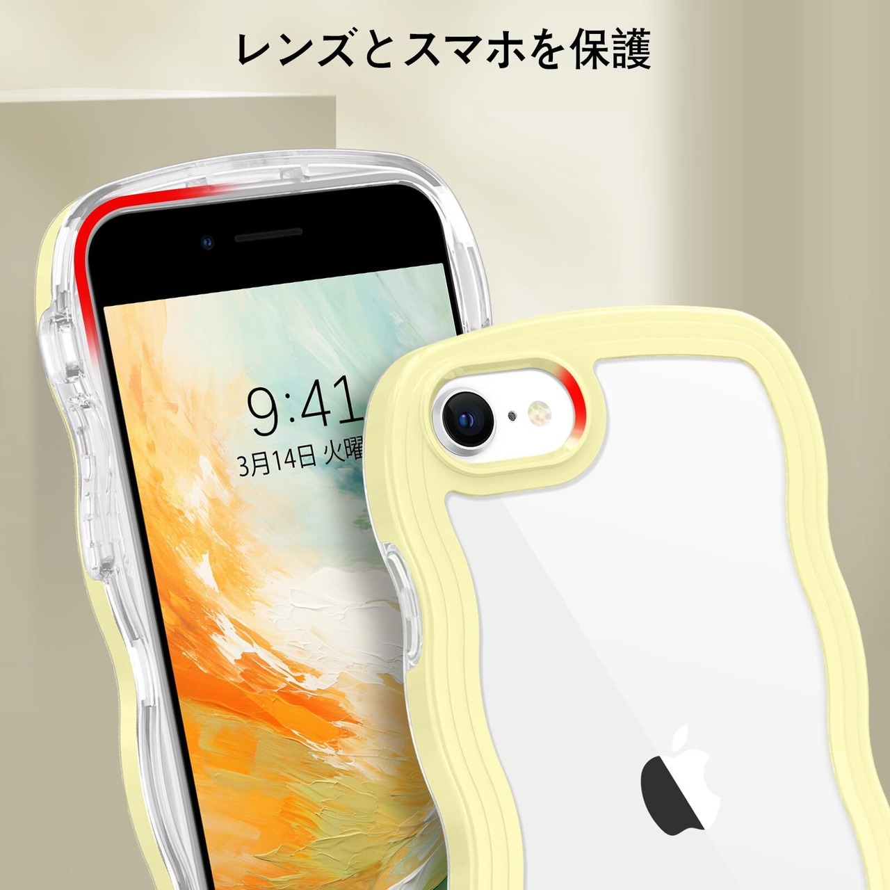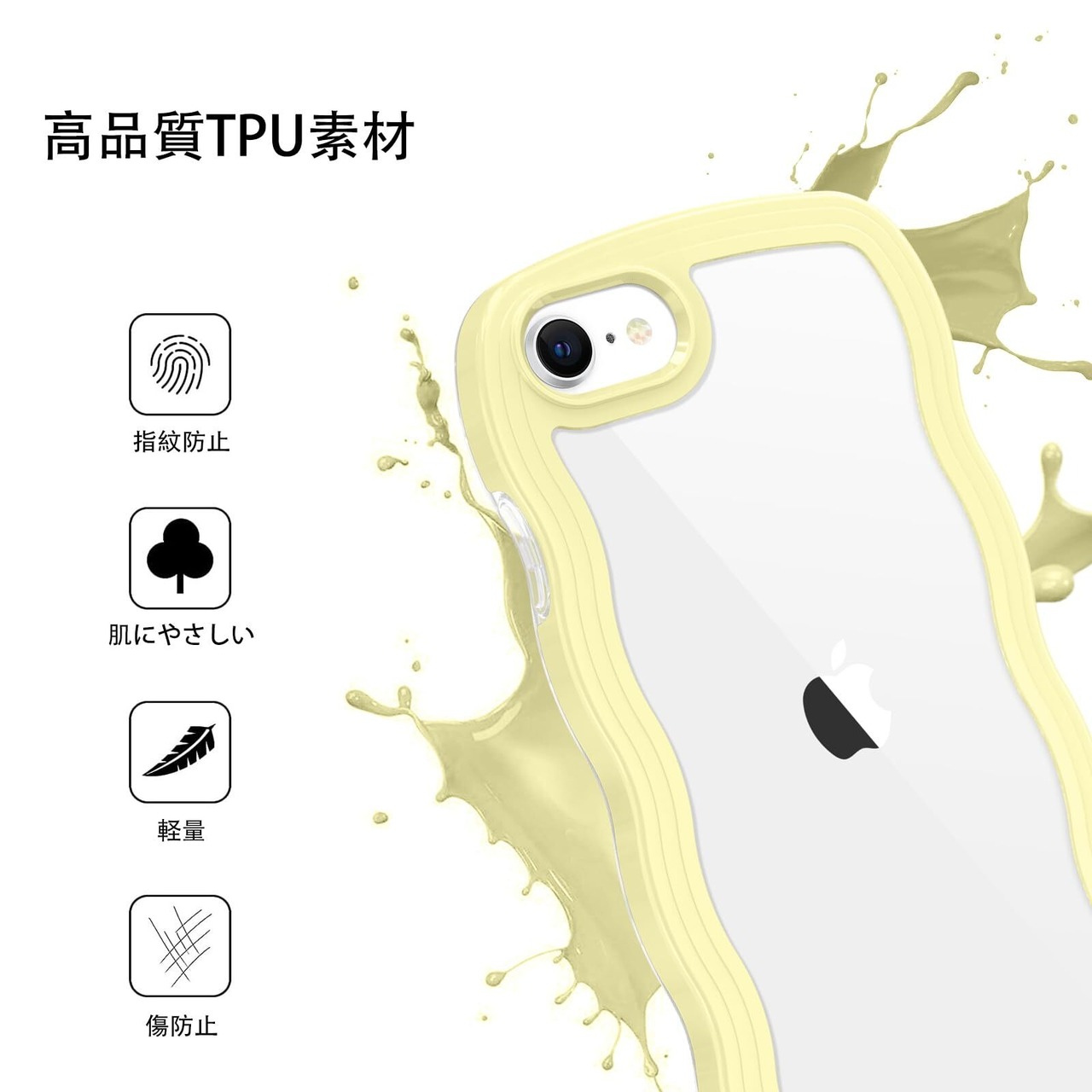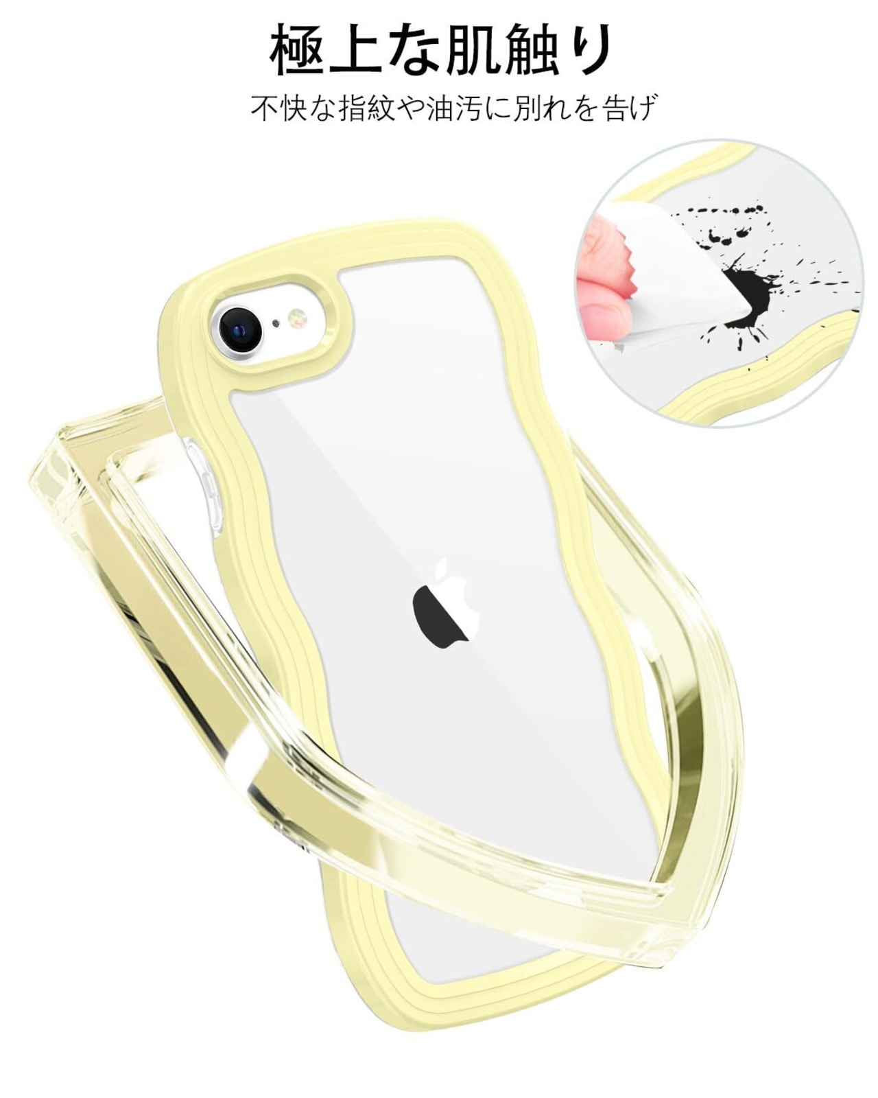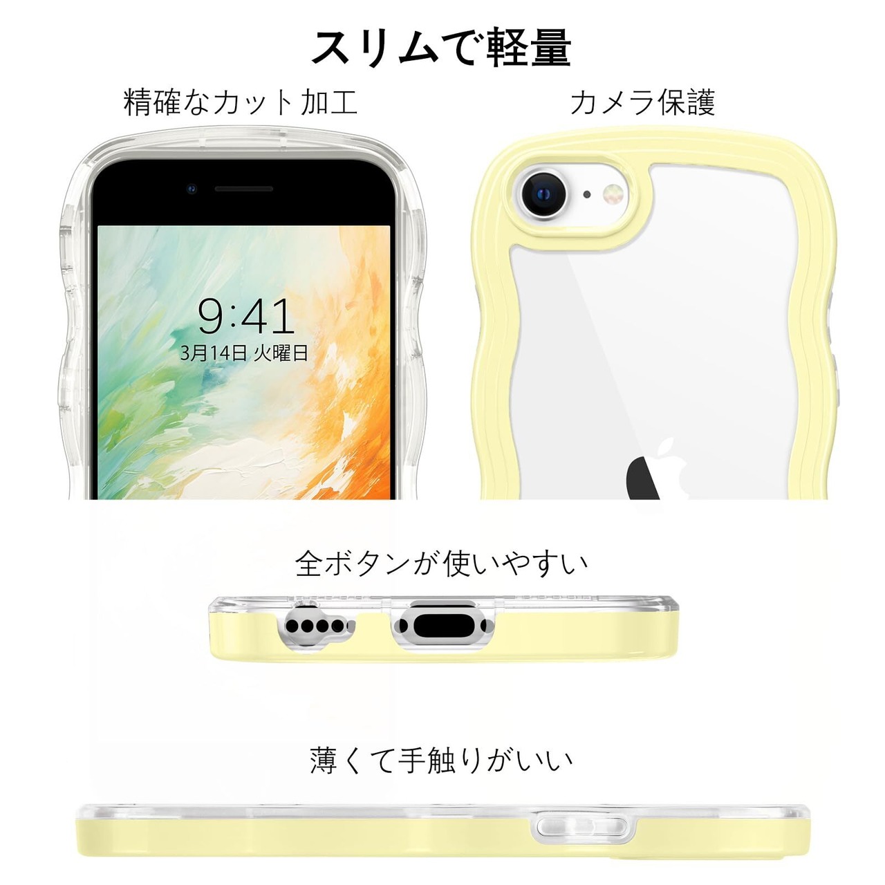 BENTOBEN iPhone SE 第3世代 用/iPhone SE2 / iPhone8 / iPhone7 ケース クリア TPU+PC 韓国 可愛い ウェーブ ソフト 滑り止め 薄型 軽量 耐衝撃 おしゃれ スマホケース ストラップホール付き アイフォン SE3 SE2 8 7 ケース 4.7インチ イエロー