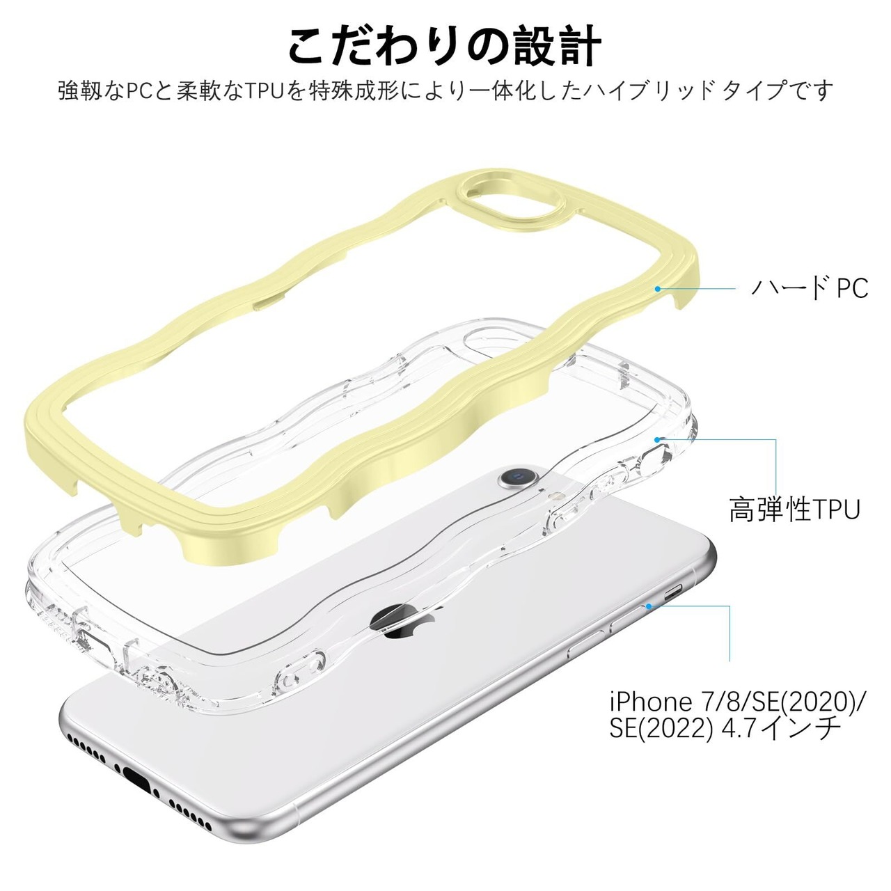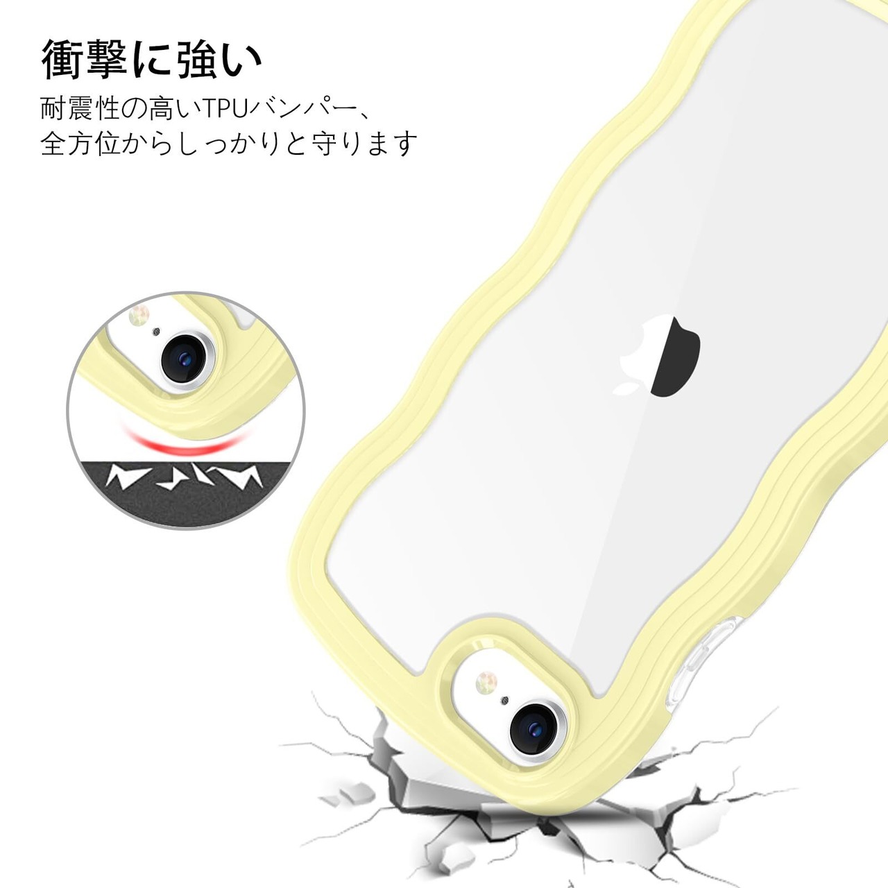【人気商品】BENTOBEN iPhone SE 第3世代 用/iPhone SE2 / iPhone8 / iPhone7 ケース クリア TPU+PC 韓国 可愛い ウェーブ ソフト 滑り止め 薄型 軽量 耐衝撃 おしゃれ スマホケース ストラップホール付き アイフォン SE3 SE2 8 7 ケース 4.7インチ イエロー
