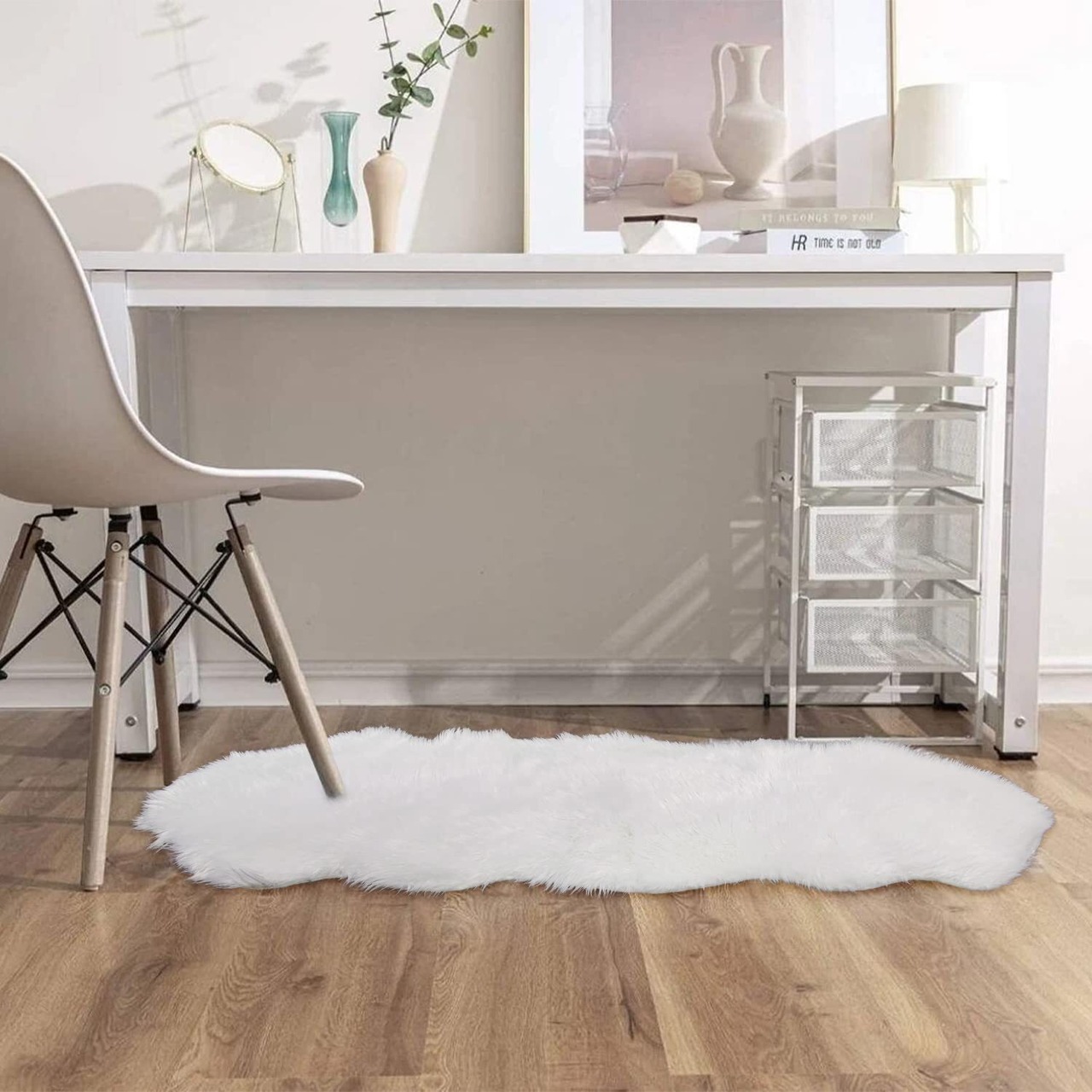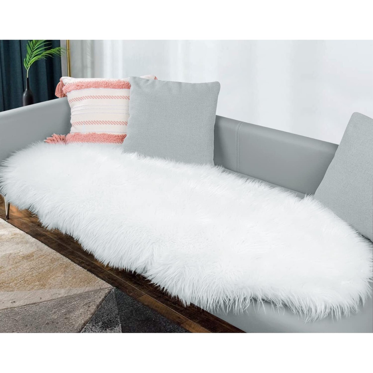 HAOCOO ムートンラグ フェイクファー 洗える ソファーかけラグ 北欧 厚手 ふんわり 柔らかい ラグマット 滑り止め 玄関マット 60*150cm 足元マット キャンプ イス 敷き シャギーラグ ホワイト