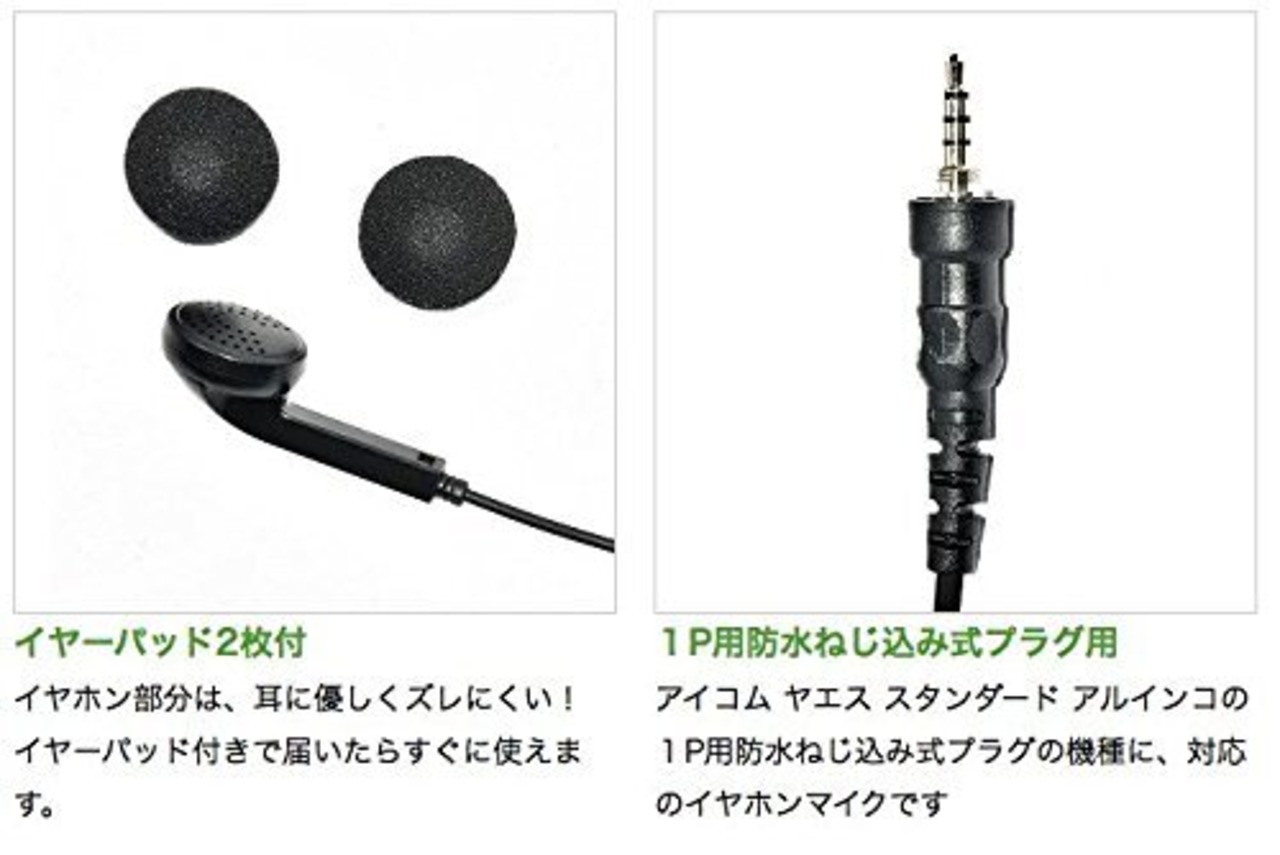 スタンダード アルインコ アイコム ヤエスの1ピン防水ねじ込み式プラグの機種に対応の、DXイヤホンマイクです
