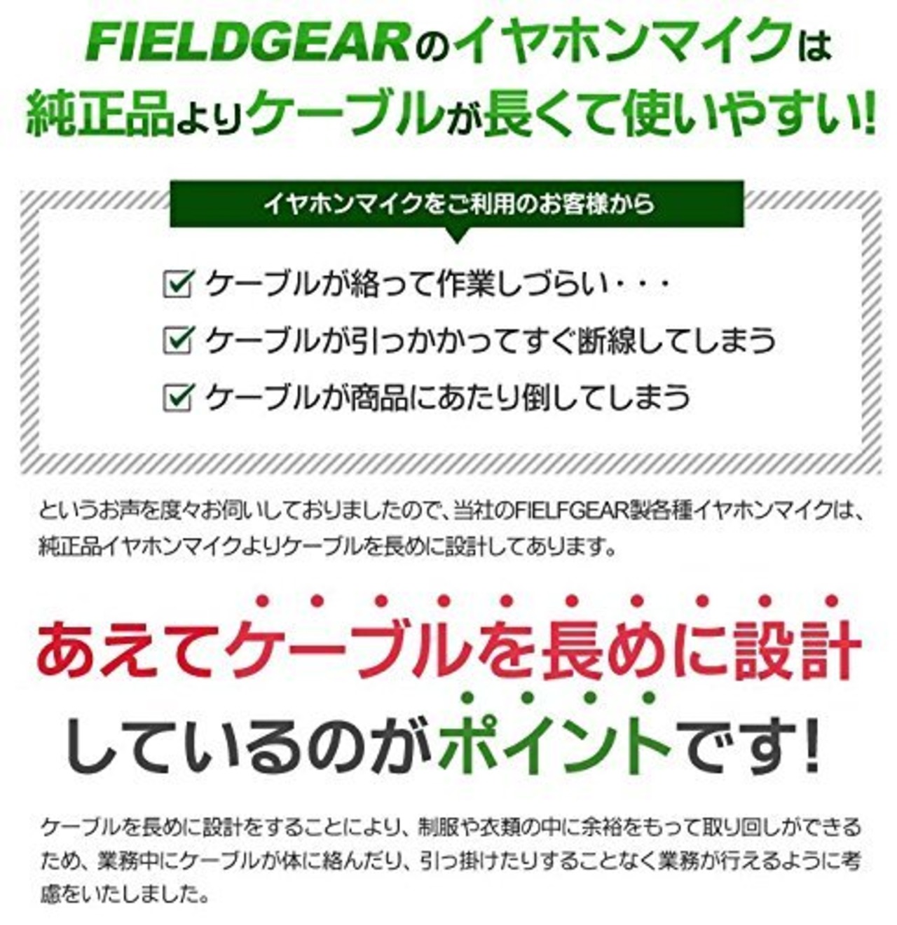 軽量デザインで、耳にフィットするイヤホンマイクは長時間の使用でも疲れにくく、現場での作業効率を向上させます。使い勝手の良さが魅力のアイテムです。