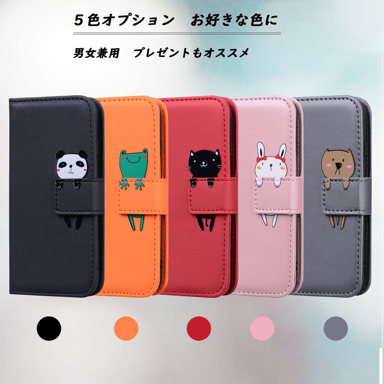 ウサギなどの可愛い動物柄が施されたデザインは、普段使いにもぴったり。薄型設計でスリムな見た目も魅力的で、ファッションのアクセントにもなります。