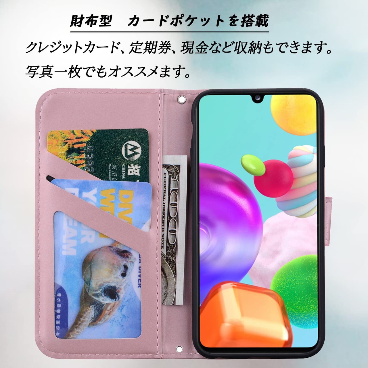 ❷【収納性・財布型】ケースの裏側にカードポケット2つ,クレジットカード、idカード、定期券を収納可能、透明ポケットに写真、名刺入れも可能です。❸【横置きスタンド機能付き】動画の視聴やテレビ電話などを長時間行っても疲れません、新幹線、飛行機の中で暇つぶしに最適。