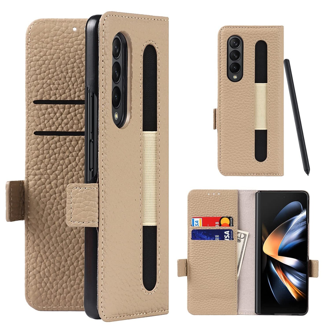 【1】対応機種: Samsung Galaxy Z Fold4 ケース 本革 本革 手帳型 財布型カバー ケース