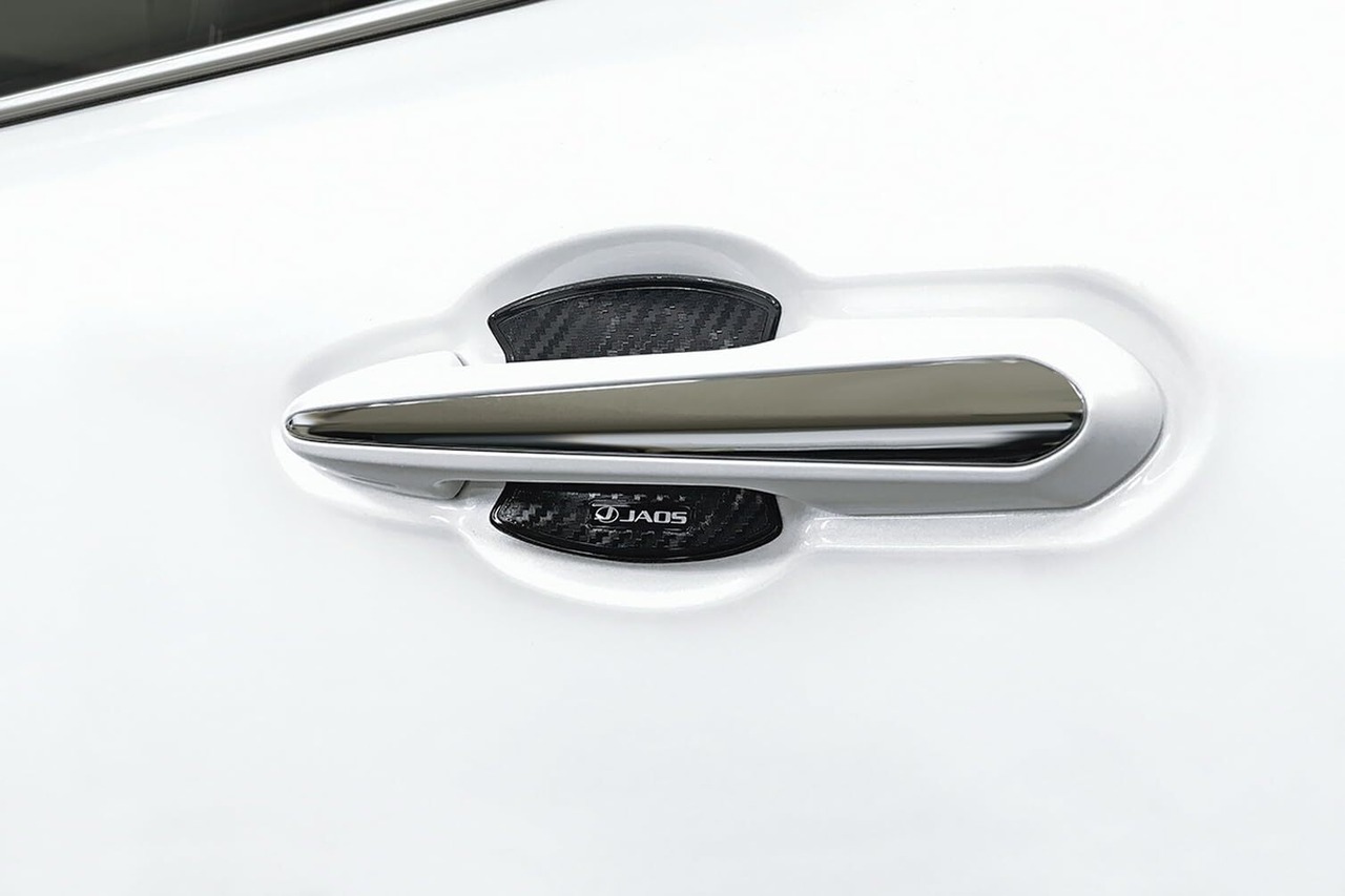 このドアハンドルプロテクターは洗練されたカーボン調仕上げが特徴。車の外装デザインを損なわず、さらなる高級感をプラスし、目を引く演出を実現します。