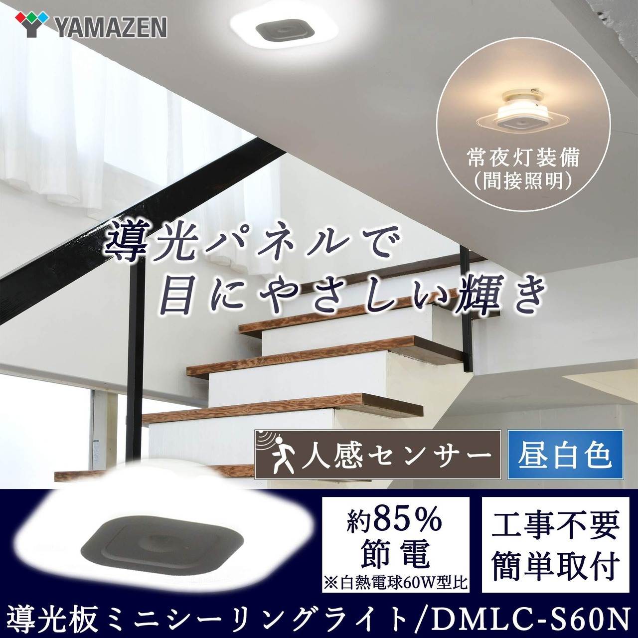 山善 導光板 LEDミニシーリングライト (人感センサー/照度センサー 搭載) 昼白色 白熱電球60W相当 照明器具 小型照明 810lm 常夜灯搭載 省エネ 工事不要 直付灯 DMLC-S60N