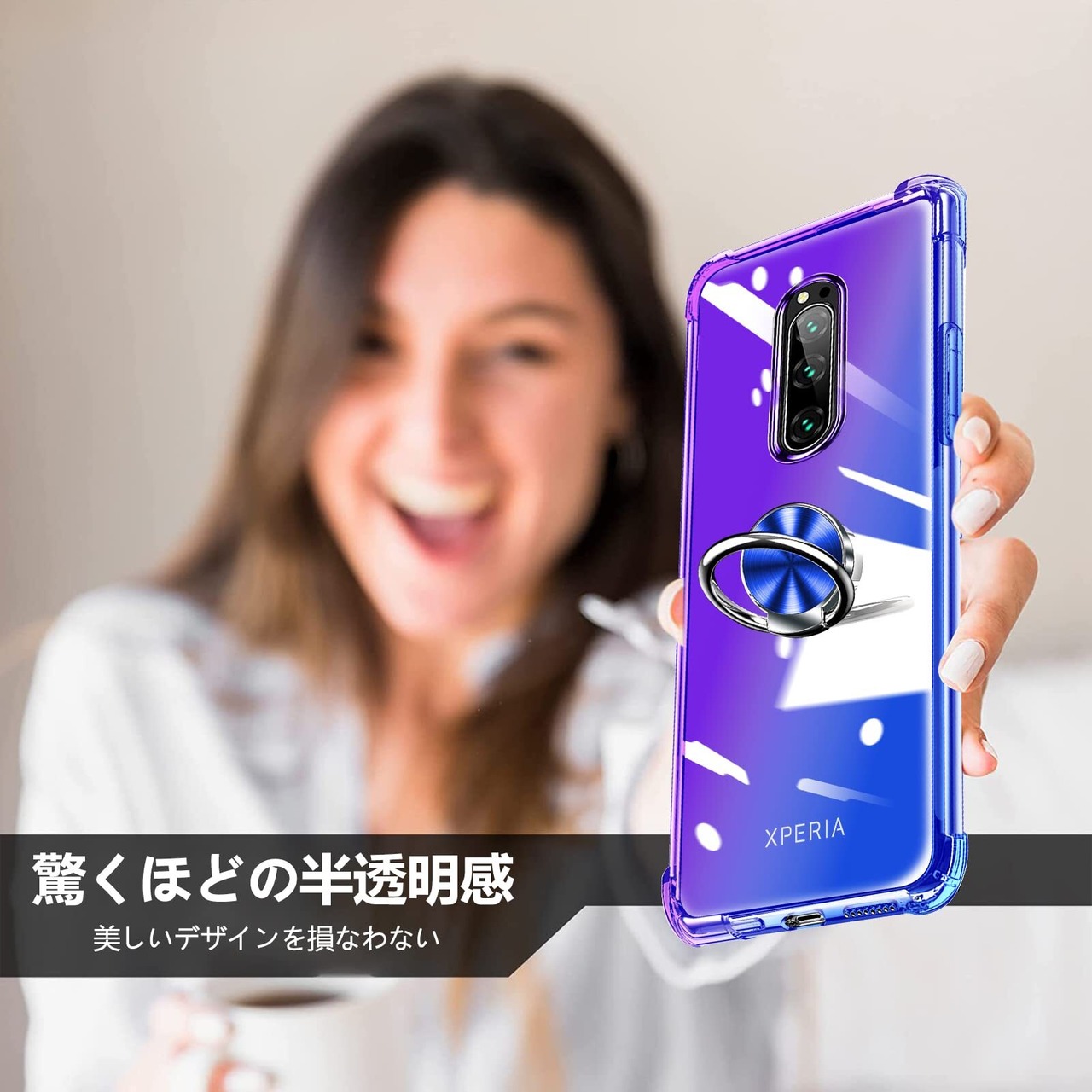 Xperia 5 II ケース リング SO-52A SOG02 カバー クリア グラデーション色 TPU ソフト エクスペリア 5 II ケース 耐衝撃 黄変防止 スリム スタンド機能 スマホケース 車載ホルダー対応 ソニー 携帯カバー 紫/ブルー HB-CSZH-03-03