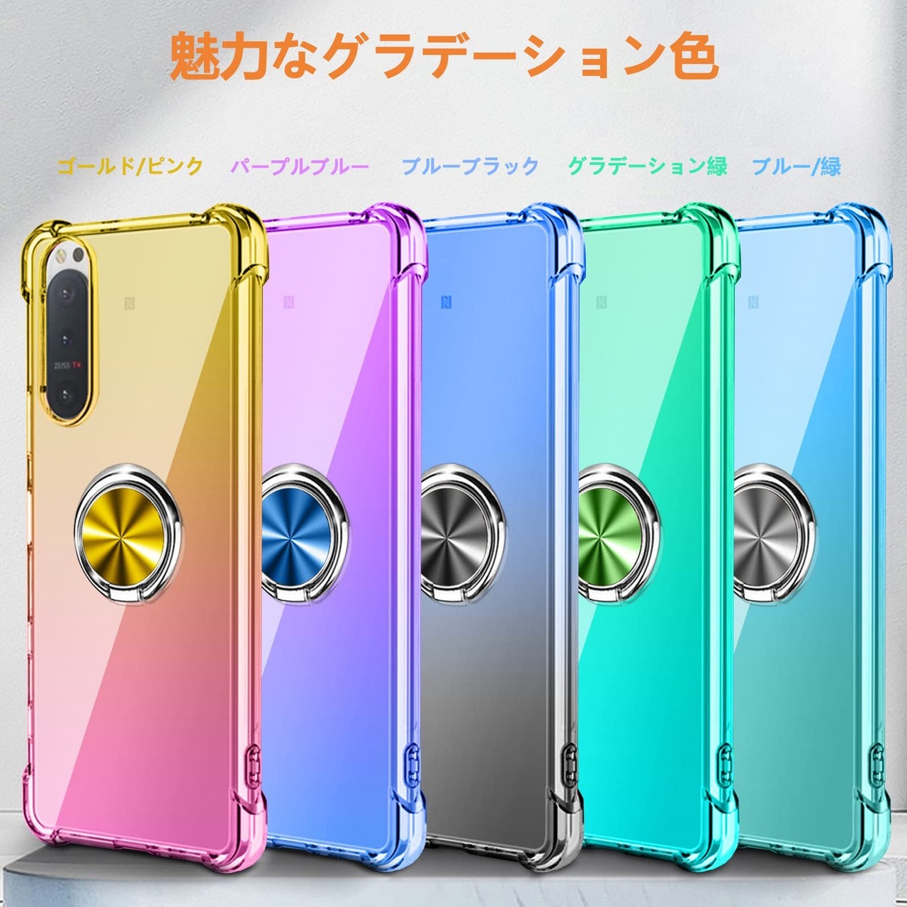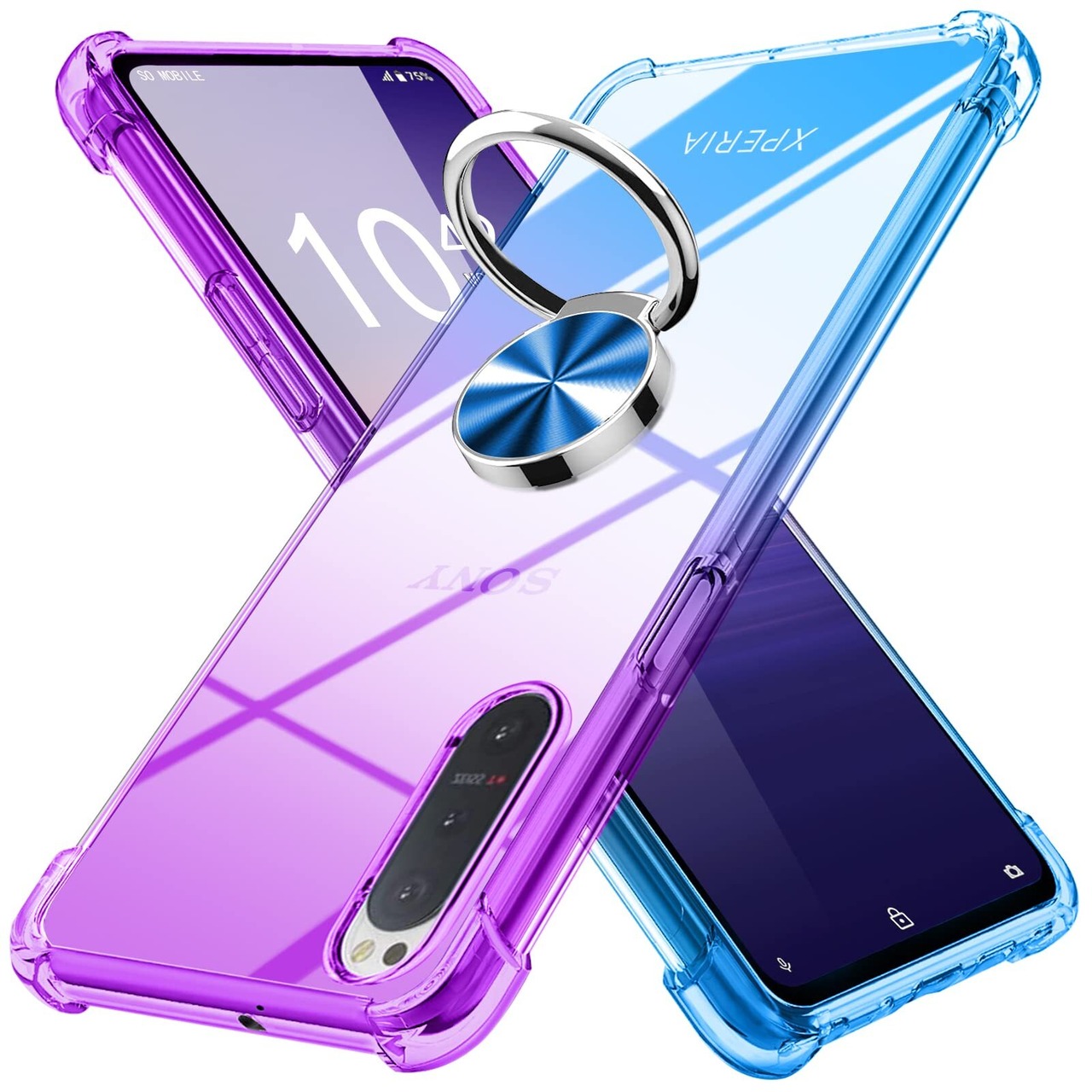 Xperia 5 II ケース リング付き クリア 薄型 グラデーション色 ケース 軽量 tpu 耐衝撃 SO-52A SOG02 スマホケース 透明 米軍MIL規格取得 おしゃれ 黄変防止防塵一体型 人気 車載ホルダー ソニー エクスペリア 5 II 携帯カバー パープルブルー MD-SXZH-02-02