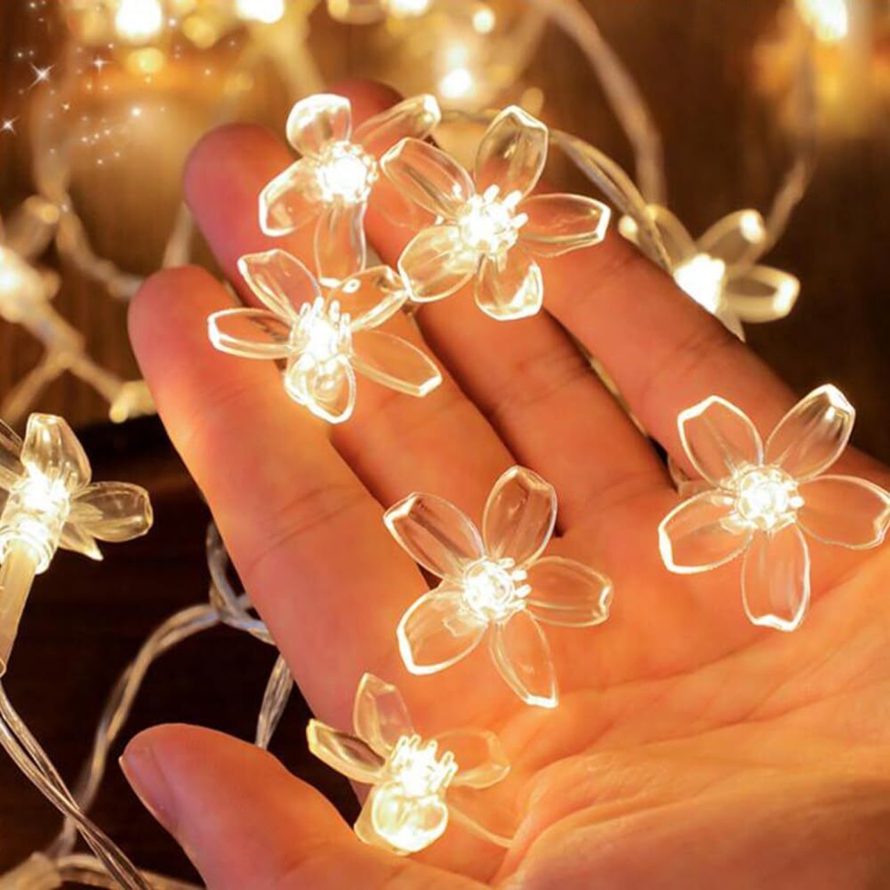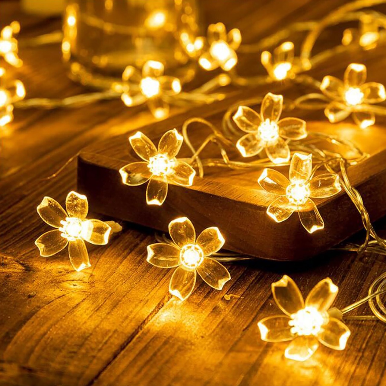 GOODCHI フェアリーライト電飾led イルミネーションライト 可愛くて小さなボール 電池式 ワイヤーライト 6M40個 LEDライト 防水 クリスマスオーナメント 結婚式 誕生日 キャンプ用 パーティー電飾 (桜の花)
