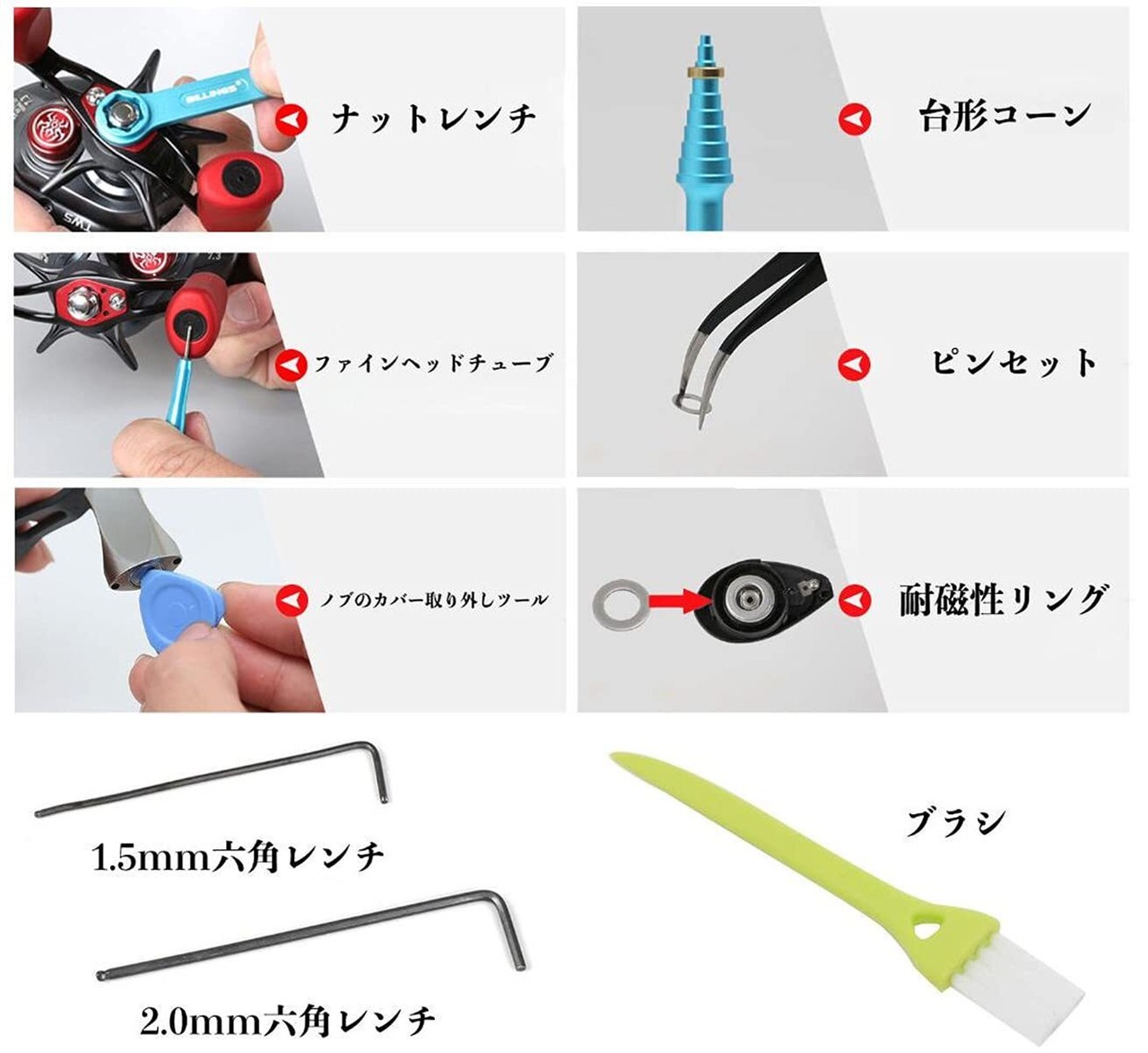 このリールメンテナンスキットを使うことで、リールの性能がいつでも最良の状態に保たれ、釣果を最大限に引き出すことができます。あなたの釣りの質を向上させるためにぜひお役立てください。