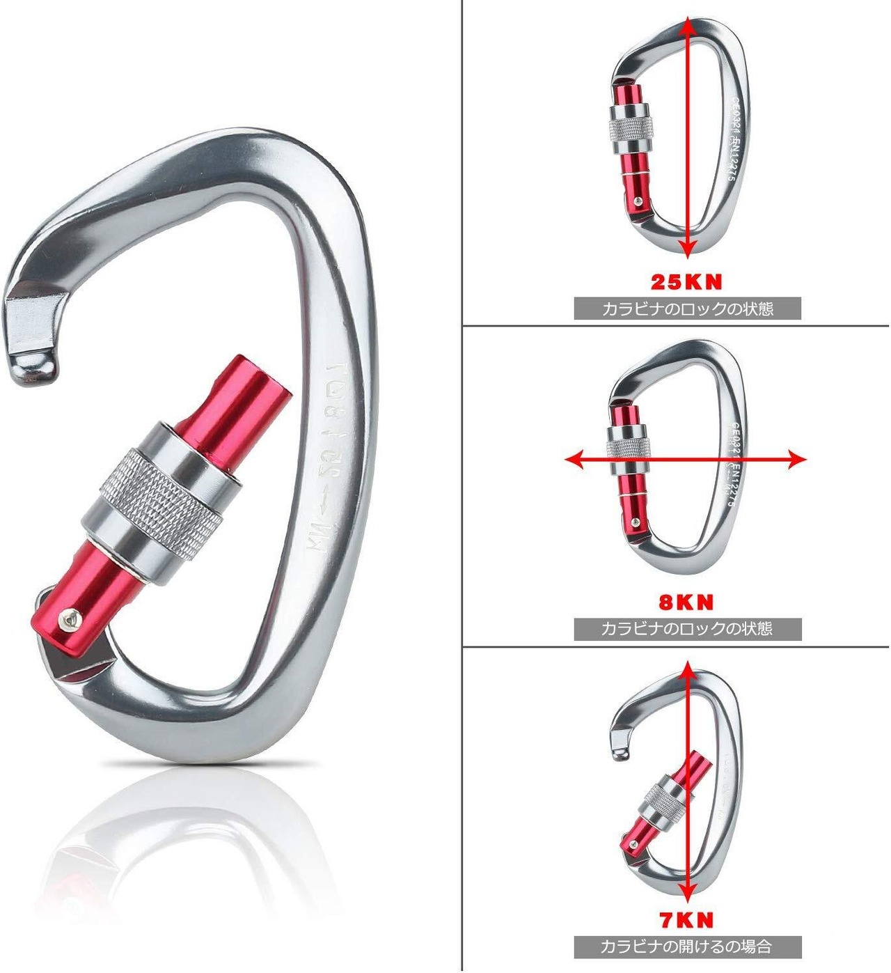 【人気商品】カラビナ Onlygreen 超軽量 耐荷重 25KN(2500kg) D型 スクリューロック 登山釦 ネジロック機能 脱落防止 頑丈なアルミ合金