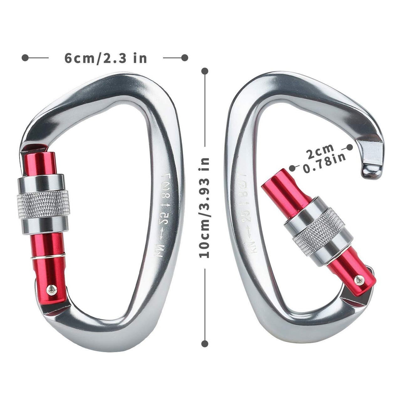 カラビナ Onlygreen 超軽量 耐荷重 25KN(2500kg) D型 スクリューロック 登山釦 ネジロック機能 脱落防止 頑丈なアルミ合金 耐久性 多機能 登山用 犬散歩用 お釣り 空中作業 キーホルダー クリップ