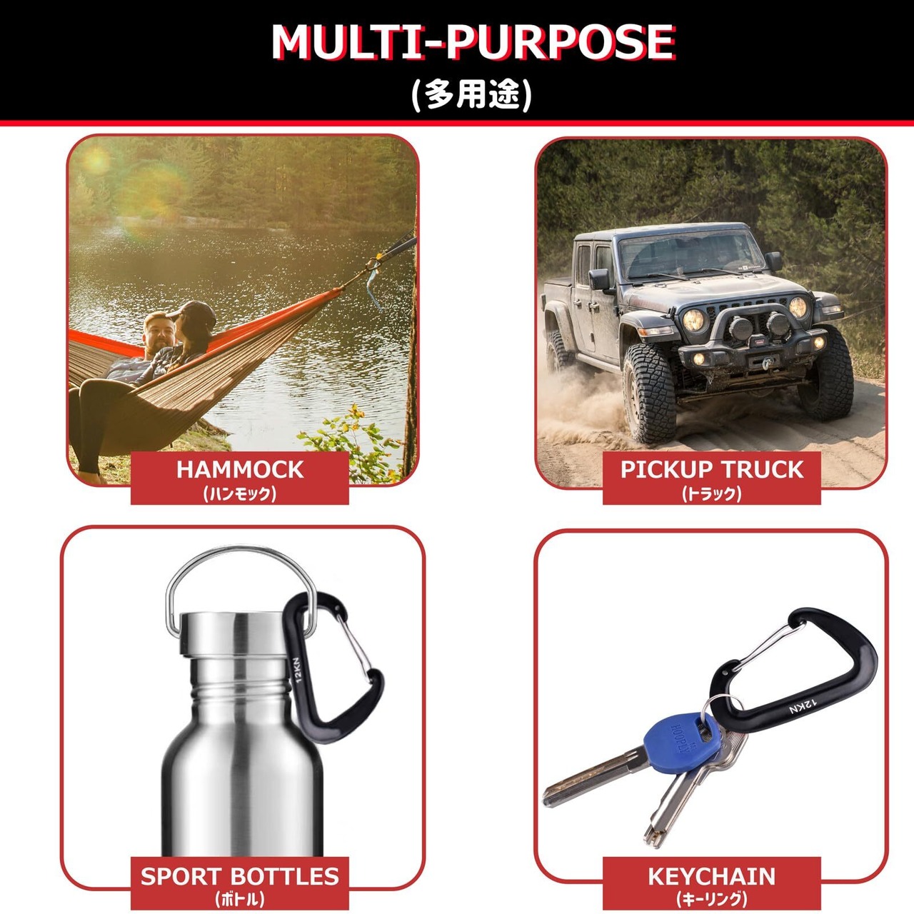 【多用途】:キーホルダー、セルフロック、リュックサックのフック、犬の散歩の引っ掛けフックなどの生活雑貨として使えます。そしてハンモック、キャンプ、ハイキングの時もご活用いただけます※ご注意:登山・クライミングにおすすめしません