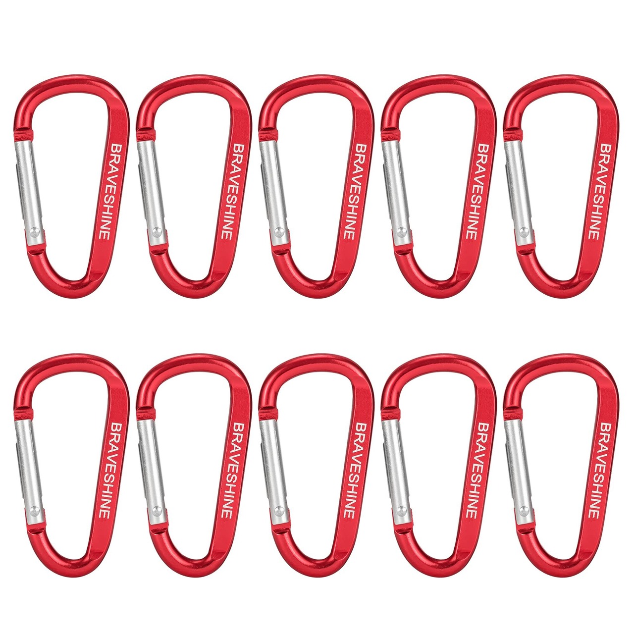 カラビナ dリング BRAVESHINE アルミ合金 軽量 キーホルダー アウトドア活動 ハイキング キャンプ 小物用 多機能カラビナ 58×31mm 10個セット