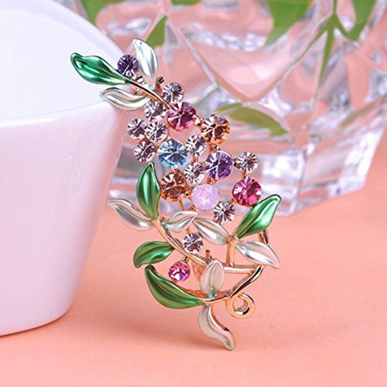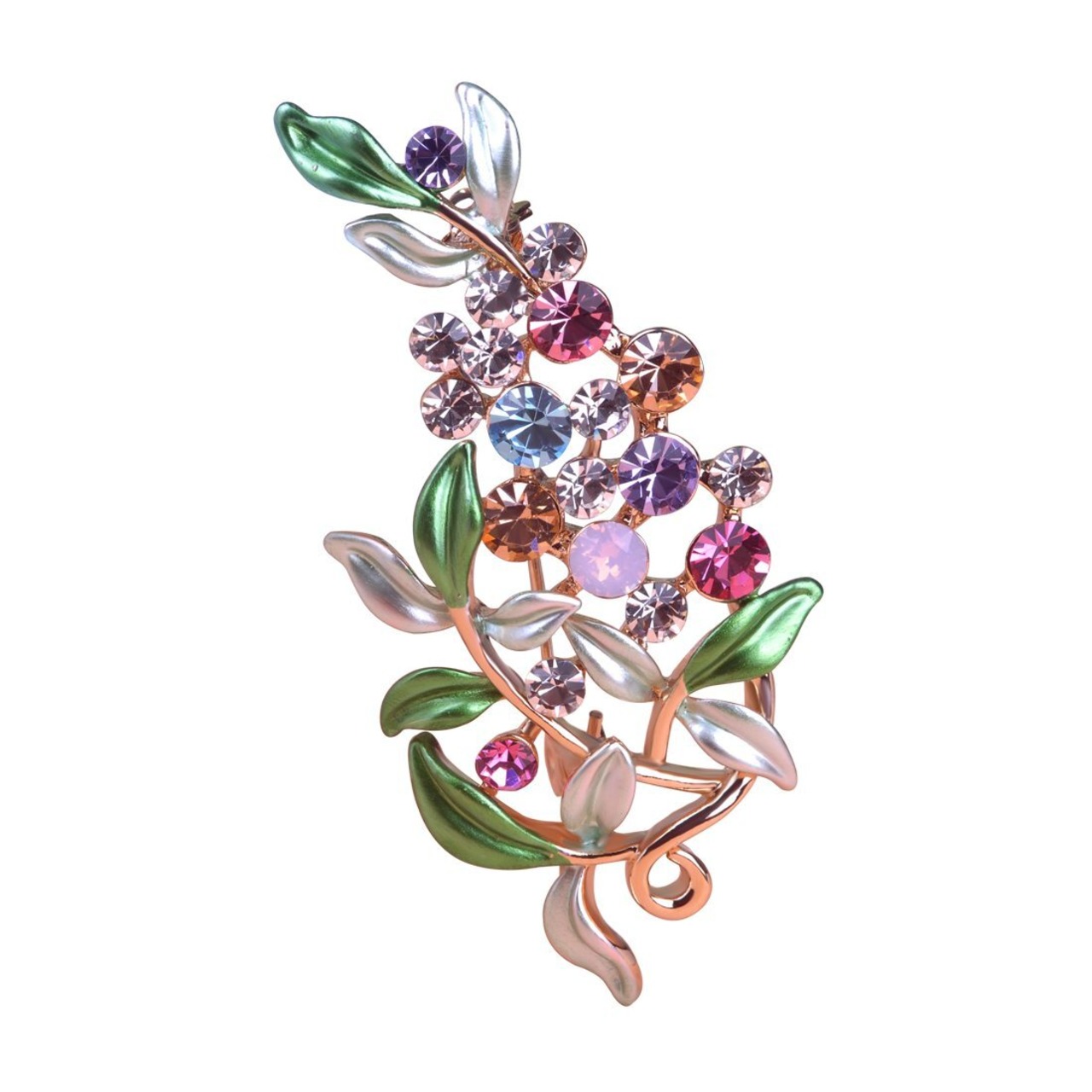 MECHOSEN 和風 レディース エレガント 花 ブローチ キャリア クリスタル 葉 フラワー コサージュ クリップ ピン アンティーク 大きい おしゃれ 大人 18金メッキ ゴールド カラフル きれい