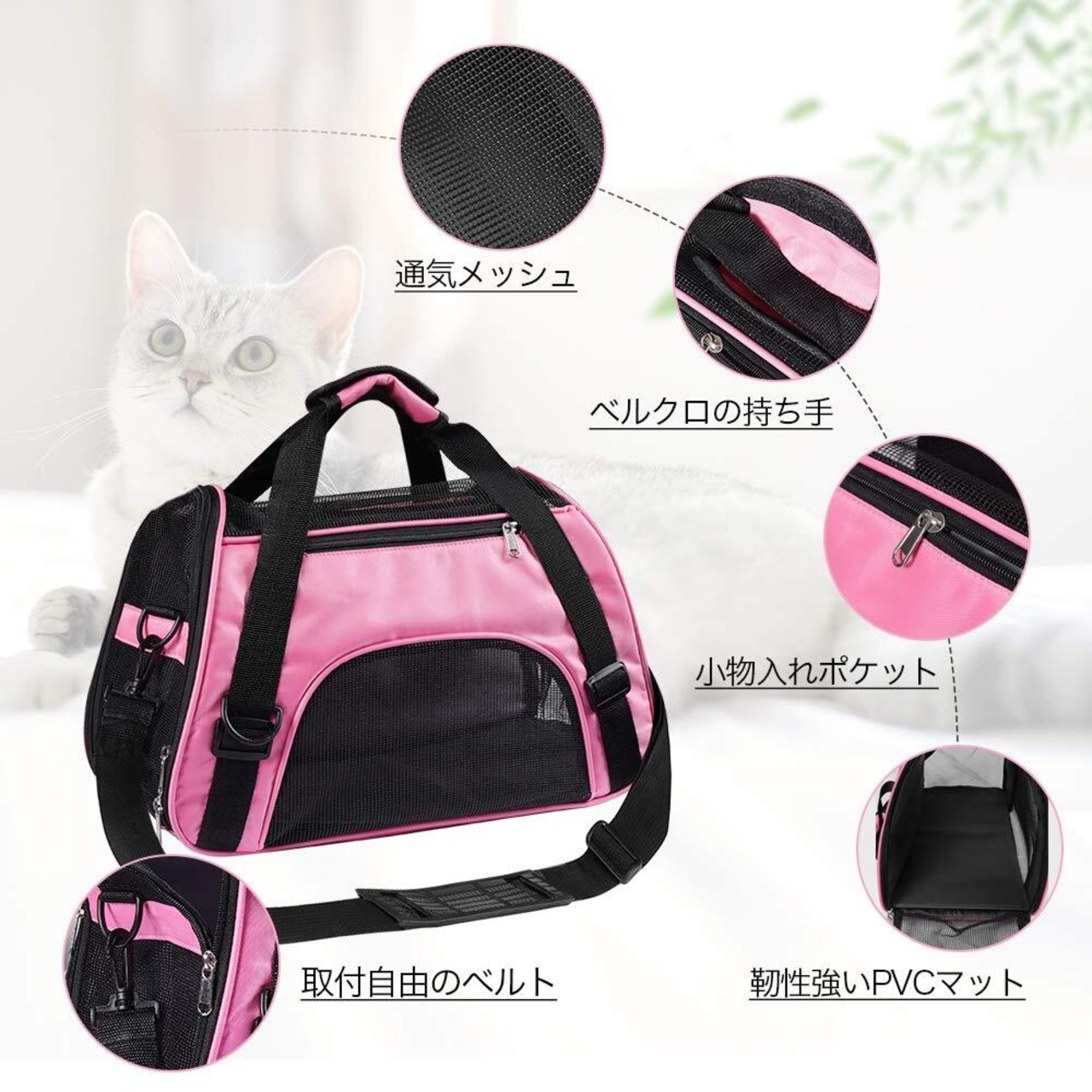 【2022最新】RHINOCATS キャリー バッグ ペットキャリー ショルダー 手提げ 猫・小型犬用 5kg耐荷重 3way キャリー バッグ お洒落 通気性 折りたたみ おでかけ 旅行 通院 防災 Sサイズ ピンク