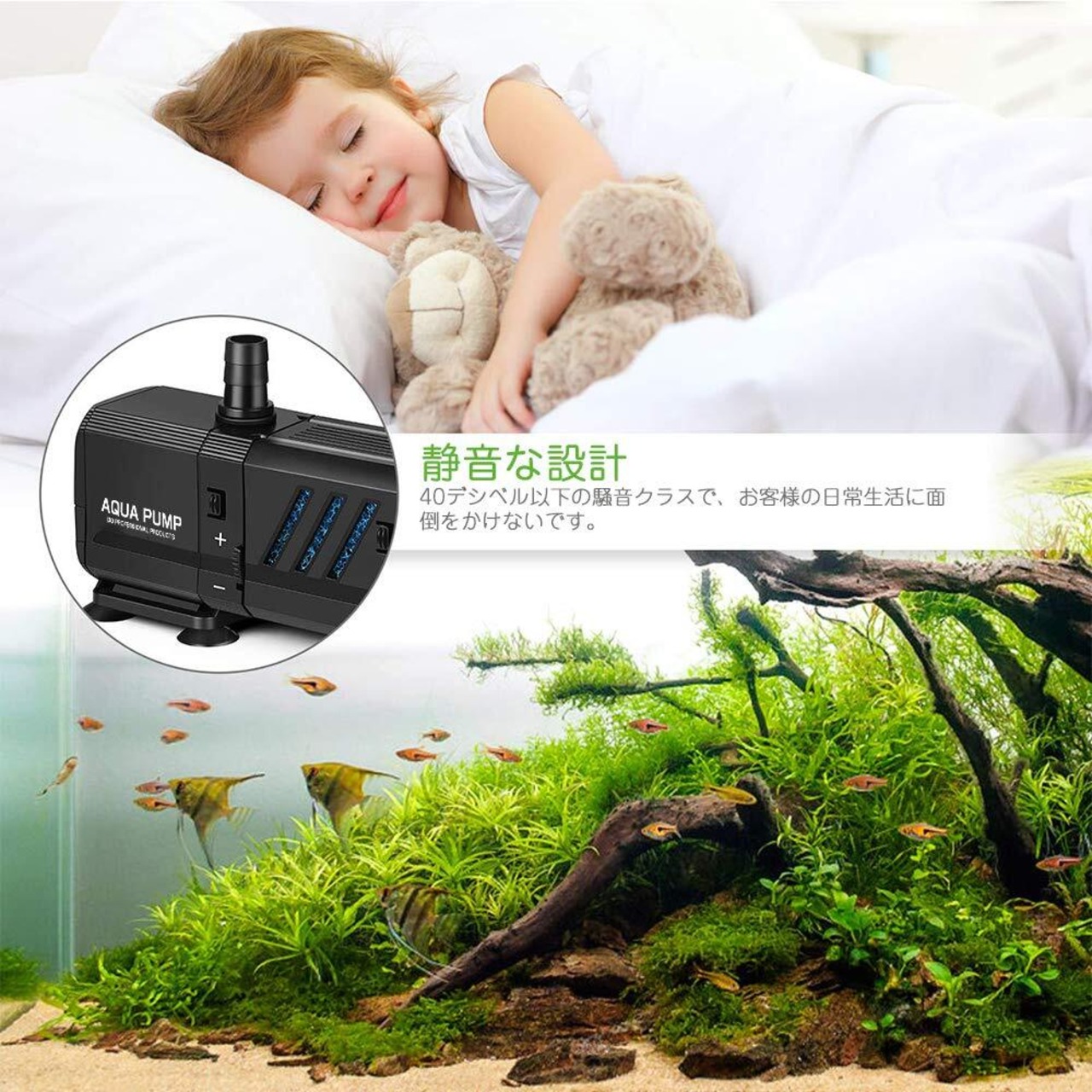 この水中ポンプは酸素増加機能を搭載しており、水の中に豊富な酸素を供給します。これにより、魚たちがより健康に過ごせる優しい環境を整えてくれます。