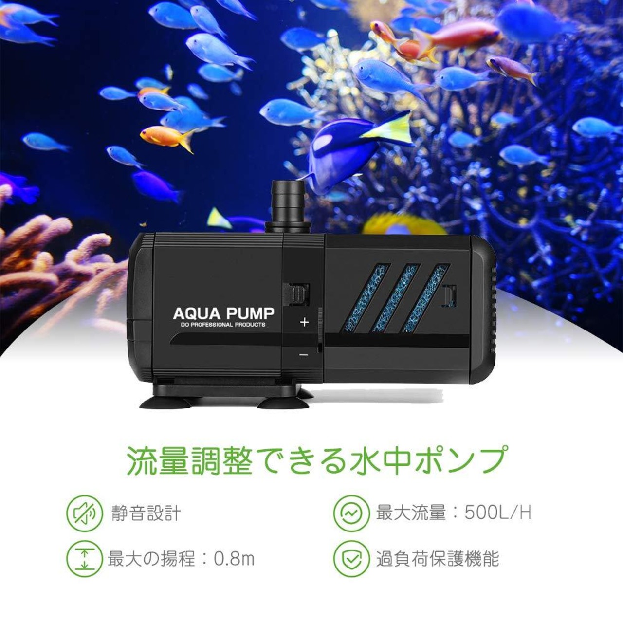 【仕様】入力電圧:AC 100V/60Hz 電力:6W 最大揚程:0.8Mぐらい 最大流量:500L/H 騒音クラス:40デシベル以下 電源コードの長さ:1.6M 適用水槽:70L以下。